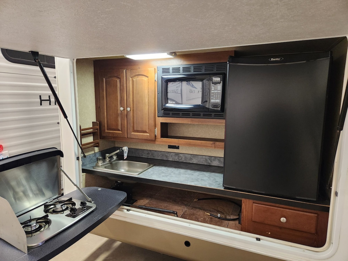 Disfruta del encantador entorno de este romántico lugar en la naturaleza. Situado en un campamento con vistas al lago Tobin. Disfruta de este espacio privado en una casa rodante de 35' con todas las comodidades. El RV está configurado solo para parejas. Te pedimos que traigas toda tu ropa de cama, tus necesidades personales. Lo sentimos, no se permiten mascotas. Suministramos todos tus utensilios de cocina, ollas, sartenes, platos, máquina de palomitas de maíz, toalla de papel, jabón. Suministramos leña, una parrilla con propano. Ven a disfrutar de un tiempo lejos de casa.