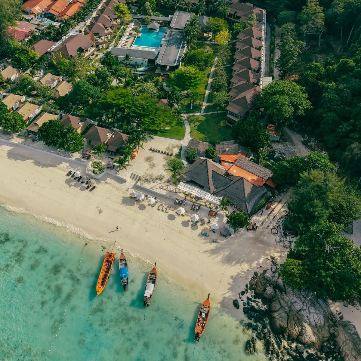 แค่ก้าวเท้าออกนอกประตูที่พัก ก็มีทุกอย่างให้สำรวจ หาดทรายขาวนุ่มเท้า น้ำใสสะอาด มีเรือคายัคบริการฟรี ใกล้ร้านค้า ร้านอาหาร ใจกลางชุมชน ใกล้ท่าเรือ ผู้คนเป็นมิตร