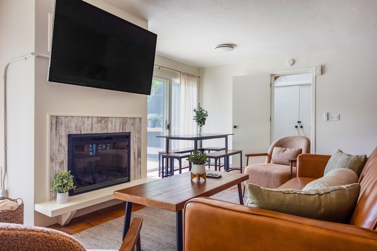 Acogedor, cautivador y completamente inolvidable, The Fox Den es un refugio aislado con jacuzzi, tallado en la ladera y ubicado sobre un barranco boscoso. Este alojamiento totalmente actualizado ofrece una experiencia diferente a cualquier otra cosa en el área de Saugatuck-Douglas. A solo tres cuadras del centro, se siente a mundos de distancia. Rodeado de árboles y lleno de luz, combina la comodidad moderna con la calma de la naturaleza. Desconéctate, relájate y disfruta de la tranquilidad. Luego, pasea hasta galerías, tiendas y restaurantes cercanos.