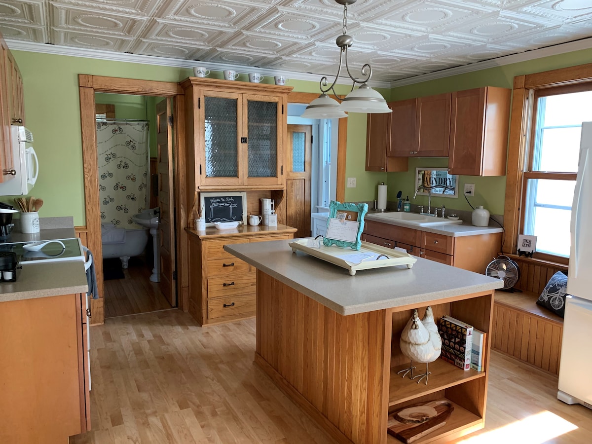 La Casa Helena es un encantador bungalow de 1913 renovado que cuenta con 2 dormitorios en el nivel principal y baño con ducha accesible para discapacitados y cocina totalmente amueblada. El segundo nivel es un nuevo y espacioso dormitorio principal con baño. Relájate en el porche delantero mientras disfrutas de una vista del lago Míchigan. Nuestra casa está a un par de minutos a pie del lago, el centro de la ciudad, restaurantes y tiendas. A 30 minutos en coche del centro de Milwaukee y a 30 millas al sur de Kohler. El sendero interurbano es fácilmente accesible desde nuestra ubicación.