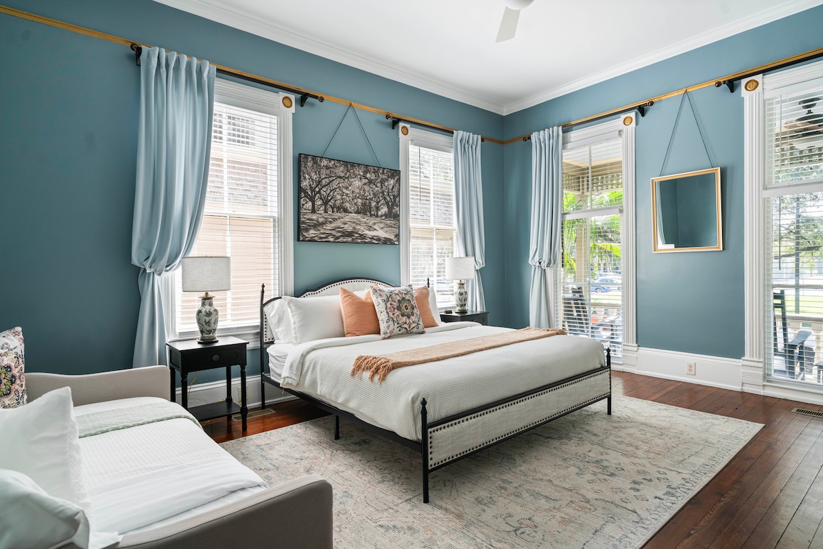 Alójate en el corazón de la histórica Savannah en nuestra casa de 1800 bellamente renovada, a solo unos pasos del Parque Forsyth. Este encantador refugio combina el carácter clásico del sur con las comodidades modernas. Relájate en un oasis privado al aire libre con una pérgola, una silla colgante, una columna de fuego, una parrilla y asientos acogedores, perfectos para relajarte con una bebida. Ideal para una escapada romántica, un viaje de chicas o una escapada de fin de semana, esta joya ofrece comodidad, encanto y una ubicación privilegiada.