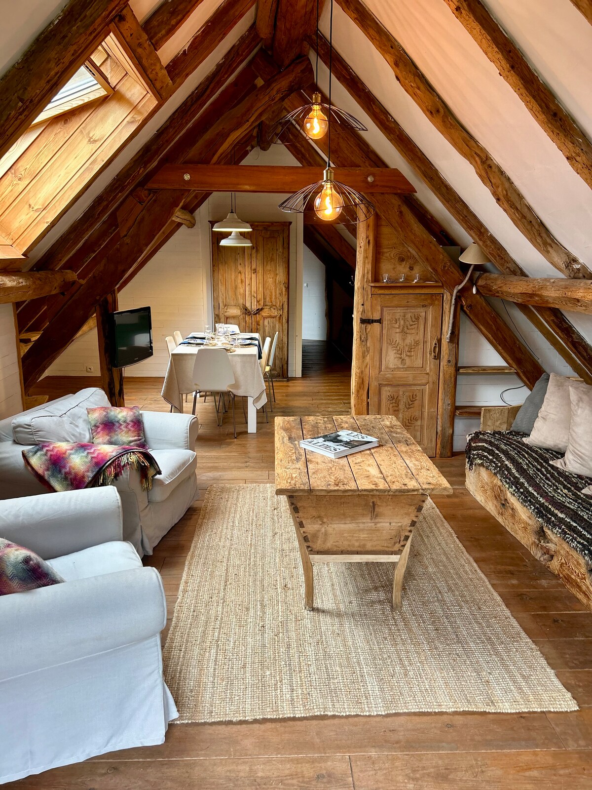 Acogedor y auténtico loft de aproximadamente 100 m2 en un chalet construido en 1811 con impresionantes vistas a la montaña, decoración única y un ambiente cálido. Apreciarás este refugio de relajación durante tu estancia. Ideal para 4 personas. Cerca de tiendas (Thônes 4 km), las estaciones de esquí de Aravis (La Clusaz/Grand Bornand, Manigod 15 km), rutas de senderismo y Annecy (20 km). Disfruta de la comodidad y tranquilidad del entorno. Se admiten mascotas (1) previa solicitud y con un suplemento diario.
