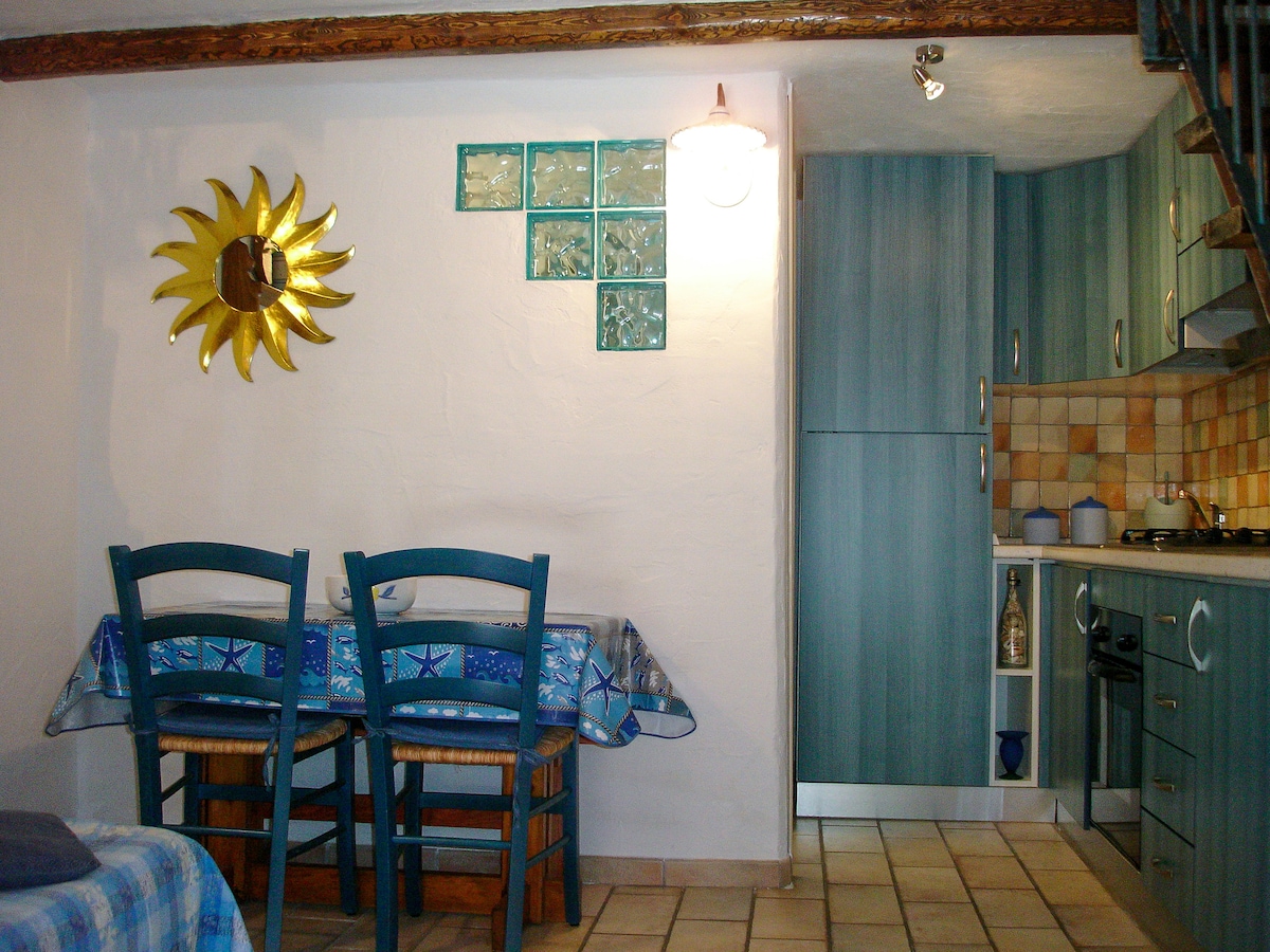 Relájese en nuestro stazzu único, tranquilo, un verdadero remanso de paz. Un flechazo y luego una renovación con amor por el detalle (mosaico) para darle la bienvenida aquí en nuestro pequeño paraíso. Situado en una colina con vistas de casi 360° al mar y a la montaña. Aquí está tranquilo, los vecinos están a 1 km. (a veces se escucha el burro) La casa está rodeada de olivos, alovera, adelfas...y los famosos pequeños muros de piedra. ¡Está a solo 5 minutos del bullicio turístico!