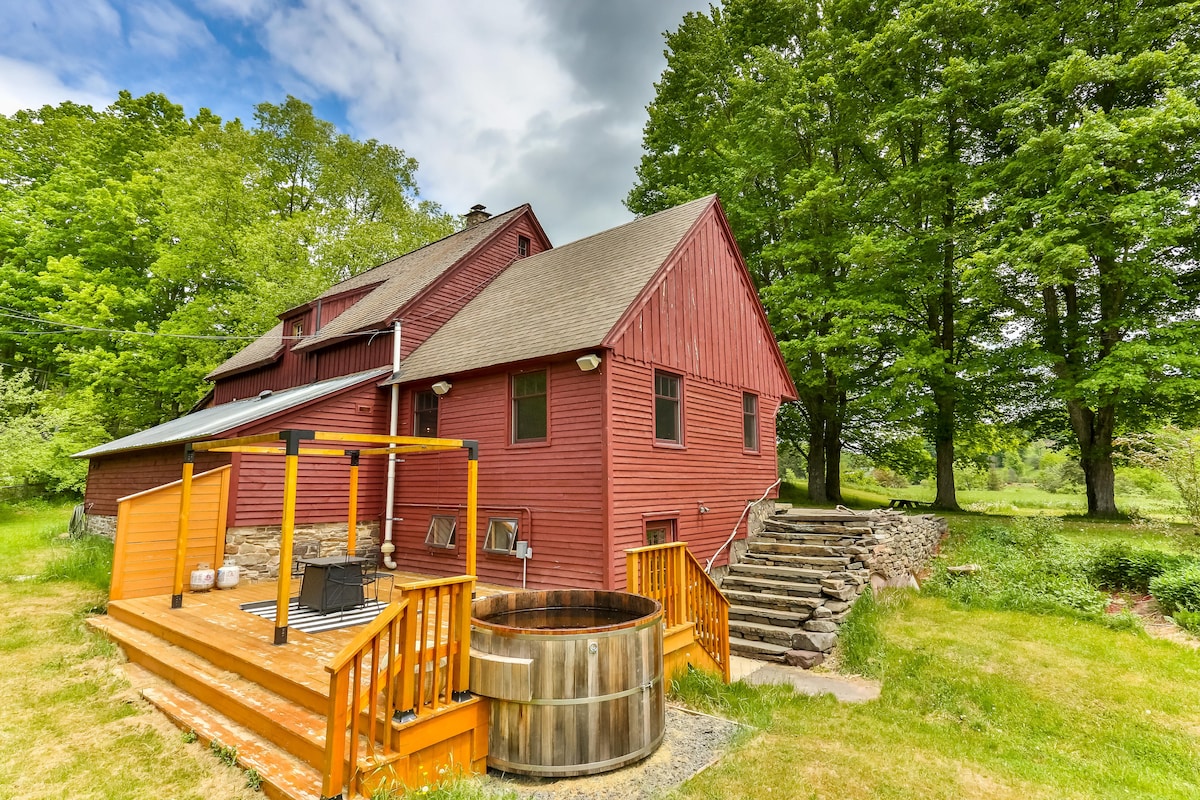 Escápate a un refugio privado y sereno en 5,87 acres con vistas a la montaña y un tranquilo estanque de 1 acre. Relájate en el jacuzzi o acurrúcate junto a la estufa de pellets de leña. Disfruta de una cocina totalmente equipada, televisores Roku y esterillas de yoga en el solárium. El dormitorio principal cuenta con una cama tamaño queen con baño privado, mientras que la planta baja ofrece una litera tamaño queen con cama nido. A solo 3 millas de la tierra estatal, ideal para actividades al aire libre. El Salón de la Fama del Béisbol de Cooperstown está a solo 25 millas de distancia.