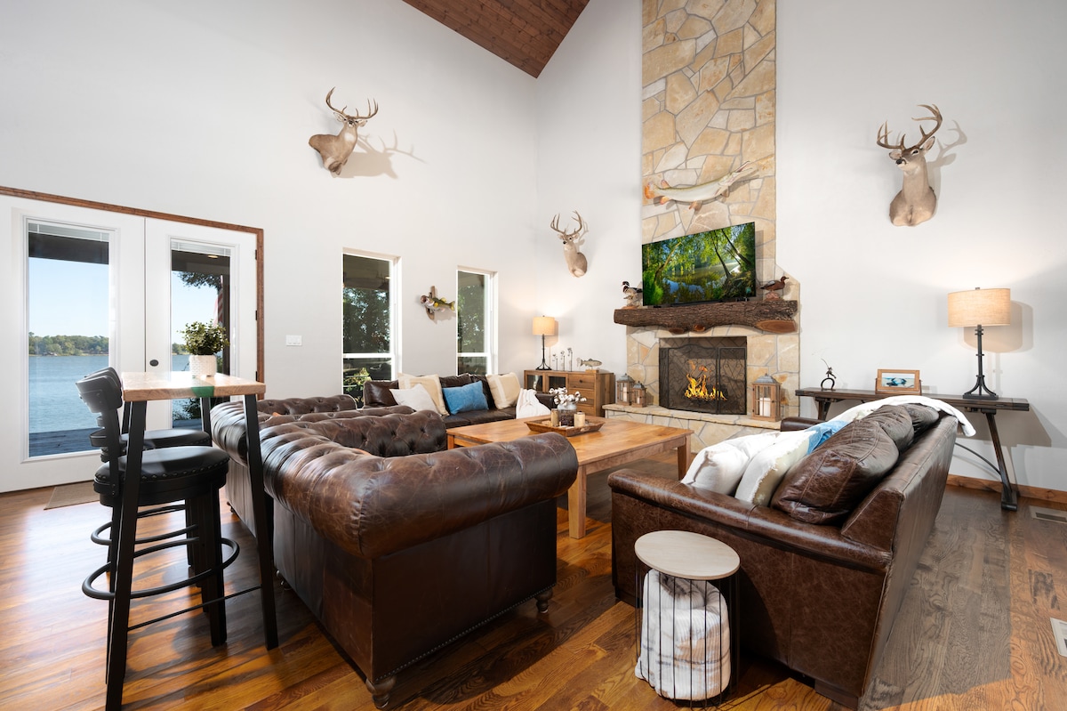 ¡Esta es tu “Vista de un millón de dólares”! Haz una parrillada y bebe cócteles en la terraza mientras el sol se pone sobre las vistas del agua cristalina. Rema en los kayaks, echa una línea desde el cobertizo privado y termina la noche junto a la fogata bajo las estrellas. En el interior, relájate en espacios abiertos y cómodos con todo lo que necesitas para divertirte y relajarte. Ya sea que estés navegando, nadando o simplemente relajándote bajo los altos pinos con amigos, la Million Dollar View Lakehouse hace que cada día se sienta como vacaciones.