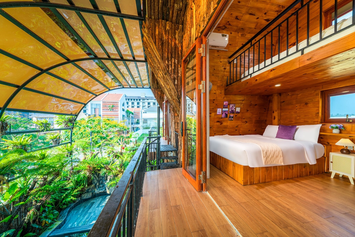 Escondido entre los árboles verdes, Gió Zen Balcony Loft es un espacio de descanso tranquilo con un diseño cálido y minimalista. La habitación cuenta con una ventana redonda que deja entrar luz natural, una cama grande y suave y un piso elevado privado para relajarse. Balcón privado con vistas al dosel verde, ideal para el café de la mañana. Equipado con aire acondicionado, TV inteligente, WiFi y baño privado totalmente equipado.
