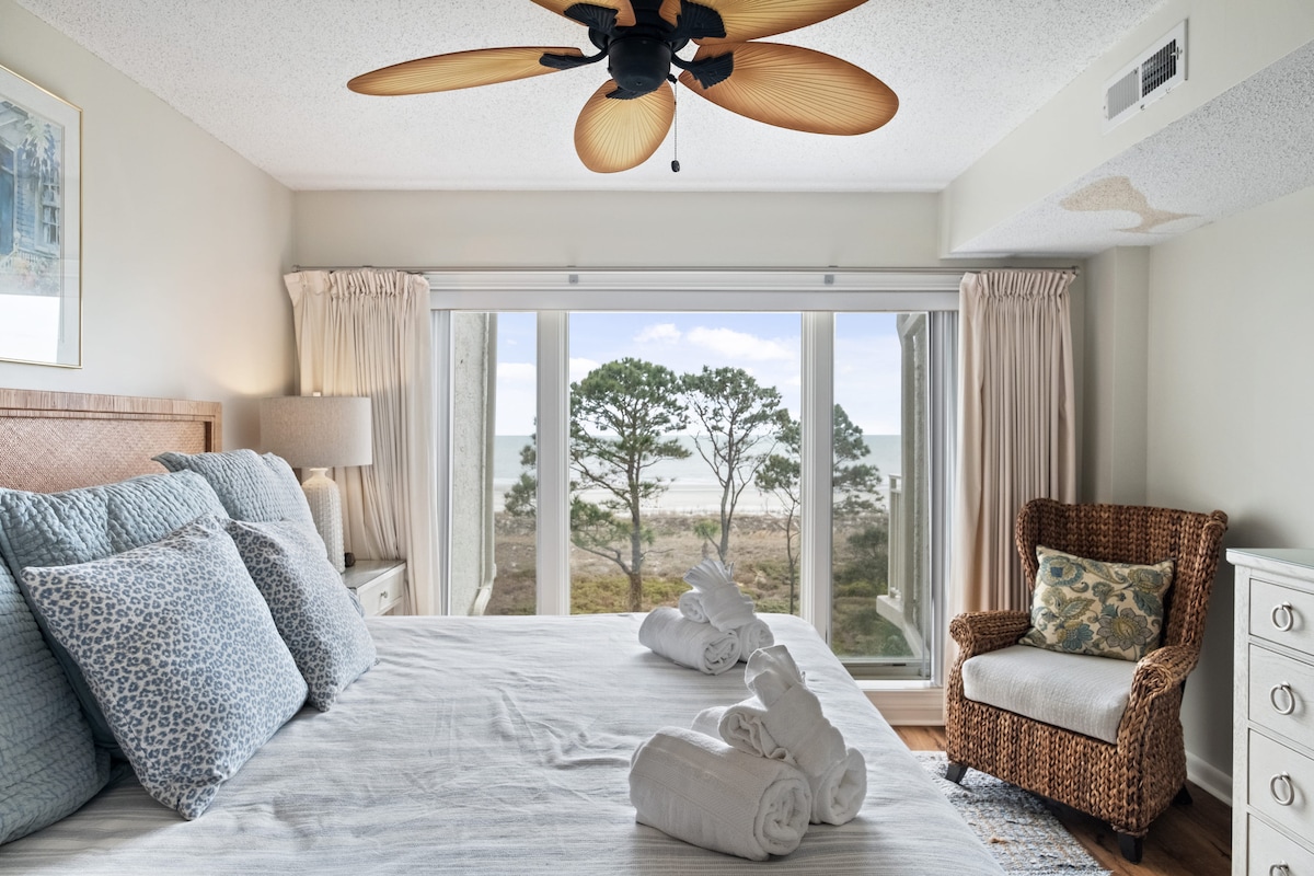 VILLA CON VISTAS AL MAR TOTALMENTE REMODELADA Ubicada en Hilton Head Beach & Tennis Resort, esta hermosa villa de 540 pies cuadrados es perfecta para una pequeña familia o pareja que busca una escapada relajante y divertida. El balcón del segundo piso ofrece vistas al mar y a la piscina, así como los relajantes sonidos de las olas del mar. Situada dentro de una comunidad cerrada y con acceso a la playa a solo unos pasos. El centro vacacional también cuenta con 2 piscinas privadas, 3 restaurantes, alquiler de bicicletas, un gimnasio privado y mucho más.
