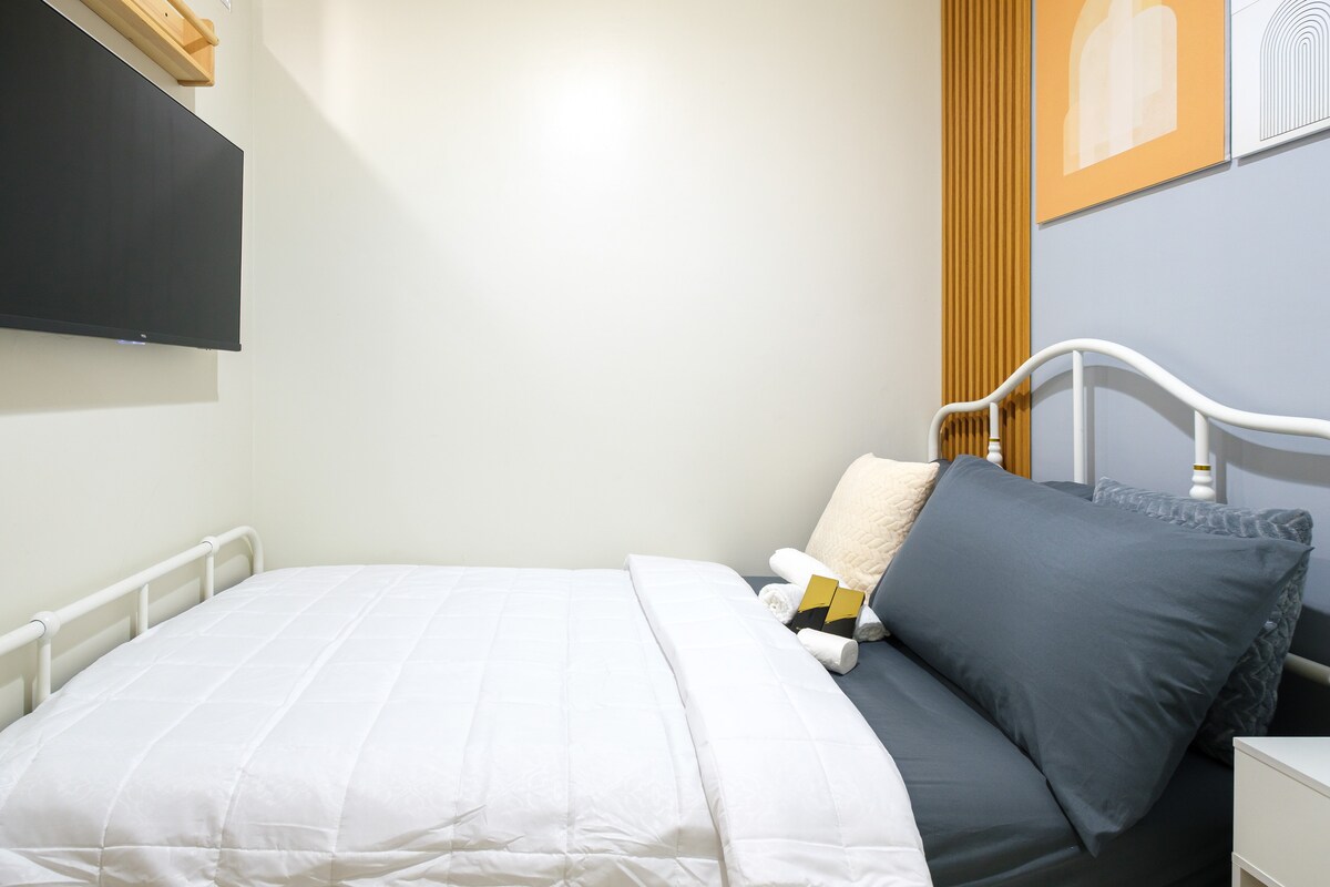 Bienvenido a nuestra unidad de 1 dormitorio de diseño minimalista con una increíble vista a la piscina. Relájate en la espaciosa sala de estar con nuestro televisor inteligente, cocina tus comidas en nuestra cocina totalmente equipada para cenar o simplemente disfruta de momentos mirando por el balcón. Pero lo más importante es que duermas profundamente en nuestras cómodas camas. Situado a poca distancia a pie de Ikea, del Centro de Convenciones SMX, del MOA Arena y de los alrededores del centro comercial Mall of Asia. Disfruta de los restaurantes, cafeterías y tiendas de comestibles cercanos, justo a las afueras del apartamento.