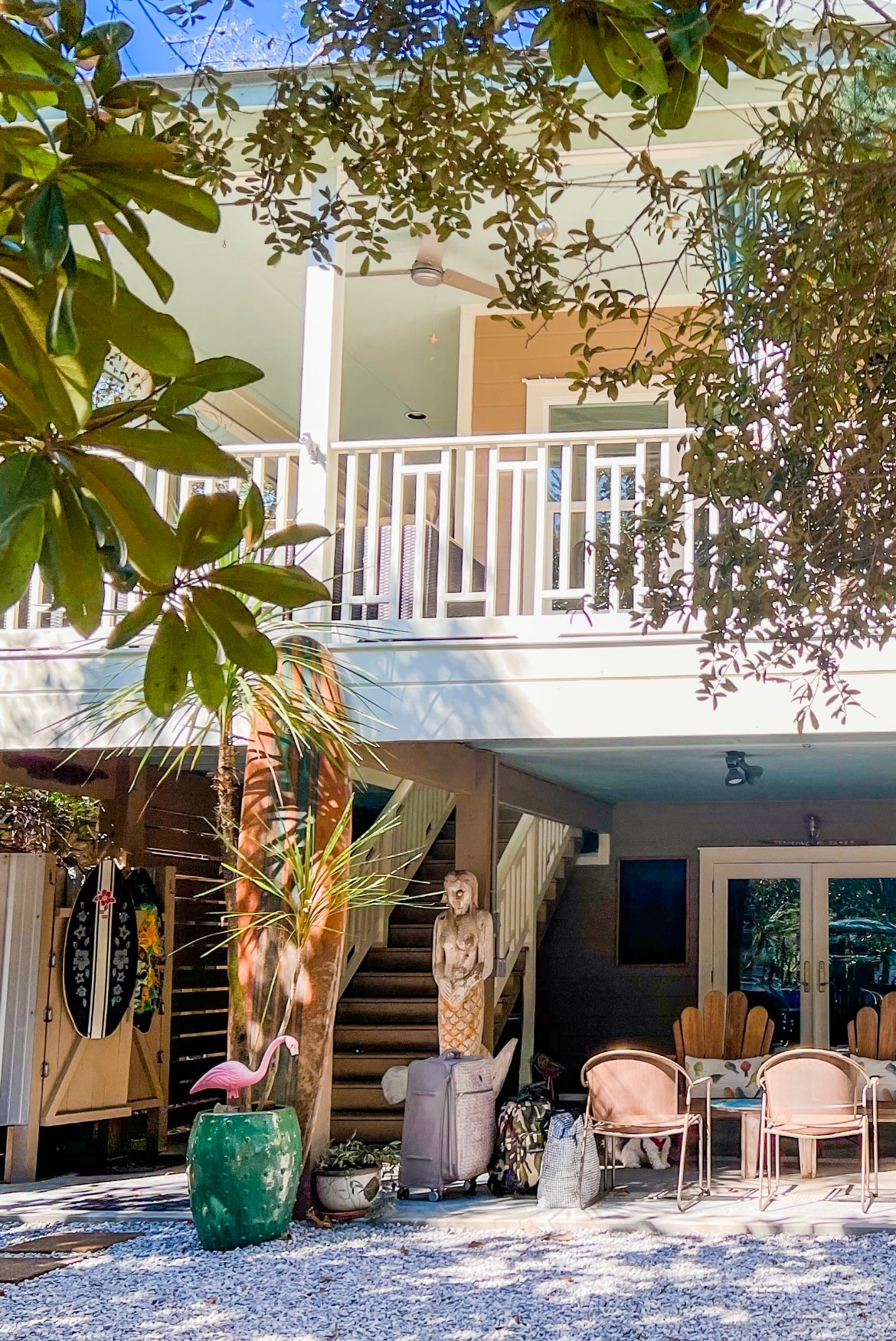 Disfruta de una casa de playa colorida y llena de inspiración, rodeada de palmeras. A pie de la playa /Golfo de América. Ubicado en el lado de la playa de 30A al final de una calle sin acceso. Suelos de mármol con techos de 10 pies y obras de arte originales. Rosemary Beach y Seaside a 5 minutos para disfrutar de fabulosas comidas y compras. Alquila bicicletas para un día perfecto. MÁXIMO 2 estacionamientos ** El estudio del patio trasero también se alquila con entrada privada. El área principal de la casa tiene su propia puerta y es separada y privada.