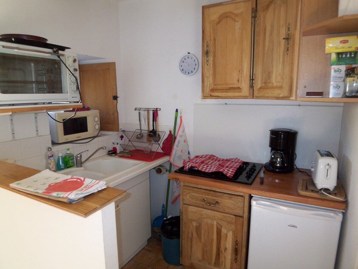 Completamente nuevo, acogedor y cálido, ofrezco mi estudio para 1 o 2 personas, en la planta baja de mi casa. El alojamiento es totalmente independiente, tiene su entrada, su terraza y el jardín. El baño es luminoso y la cocina equipada está totalmente equipada. Estoy disponible y a su disposición para responder a sus necesidades. Estaremos encantados de recibirle.