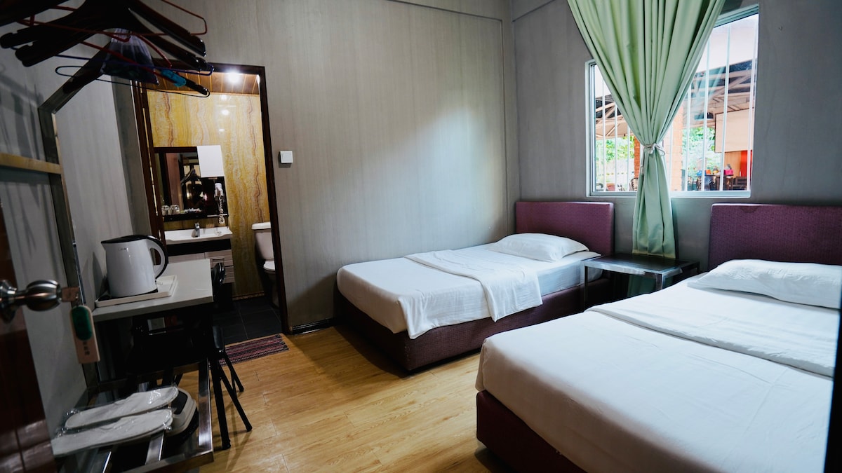 La habitación tiene una cama doble de 1,5 m y una cama individual, puede alojar a tres personas.Baño privado, convenientemente ubicado en la ciudad, a pocos pasos del muelle y varias tiendas y restaurantes, tranquilo y conveniente.Una casa acogedora y vintage con un encanto único al estilo malayo