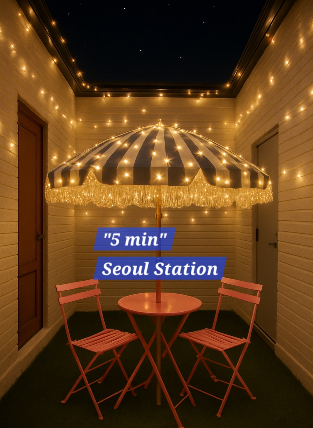 [5 minutos de la estación de Seúl, patio privado - familia y bienvenida a largo plazo] ¡A 5 minutos de la estación de Seúl! Directamente conectado a AREX (Airport Railroad), KTX, líneas de metro 1, 4 y 5 Es muy conveniente para moverse por el aeropuerto y el país. Alojamiento 🏡 privado · Patio privado - 3 dormitorios/hasta 7 personas - Zona de fotos, iluminación exterior y mesa en el patio - Un espacio para descansar incluso en días lluviosos Ropa 🛏️ de cama y limpieza de calidad hotelera - Ropa de cama estilo hotel/muchas toallas - Cuarentena profesional/optimización de estadías largas - Artículos de limpieza y artículos de uso diario Desayuno de bienvenida🍜 K-Ramen - Desayuno sencillo con cálida sinceridad. Instalaciones de🍽️ cocina totalmente equipadas - Refrigerador, microondas, horno, purificador de agua. - Utensilios de cocina/vajilla/copas de vino, etc. La mejor accesibilidad a las atracciones de📍 Seúl - A 5 minutos de la estación de Seúl/a 10 minutos de Myeongdong y Namdaemun - Hongdae, Itaewon, Gwanghwamun, Palacio de Gyeongbokgung a 15 minutos. - Lotte Mart, tienda de comestibles a 1-5 minutos a pie. Ahorro por estadías✅ largas aplicado - Descuento automático semanal/mensual - Se proporcionan muchas necesidades diarias y artículos de limpieza.