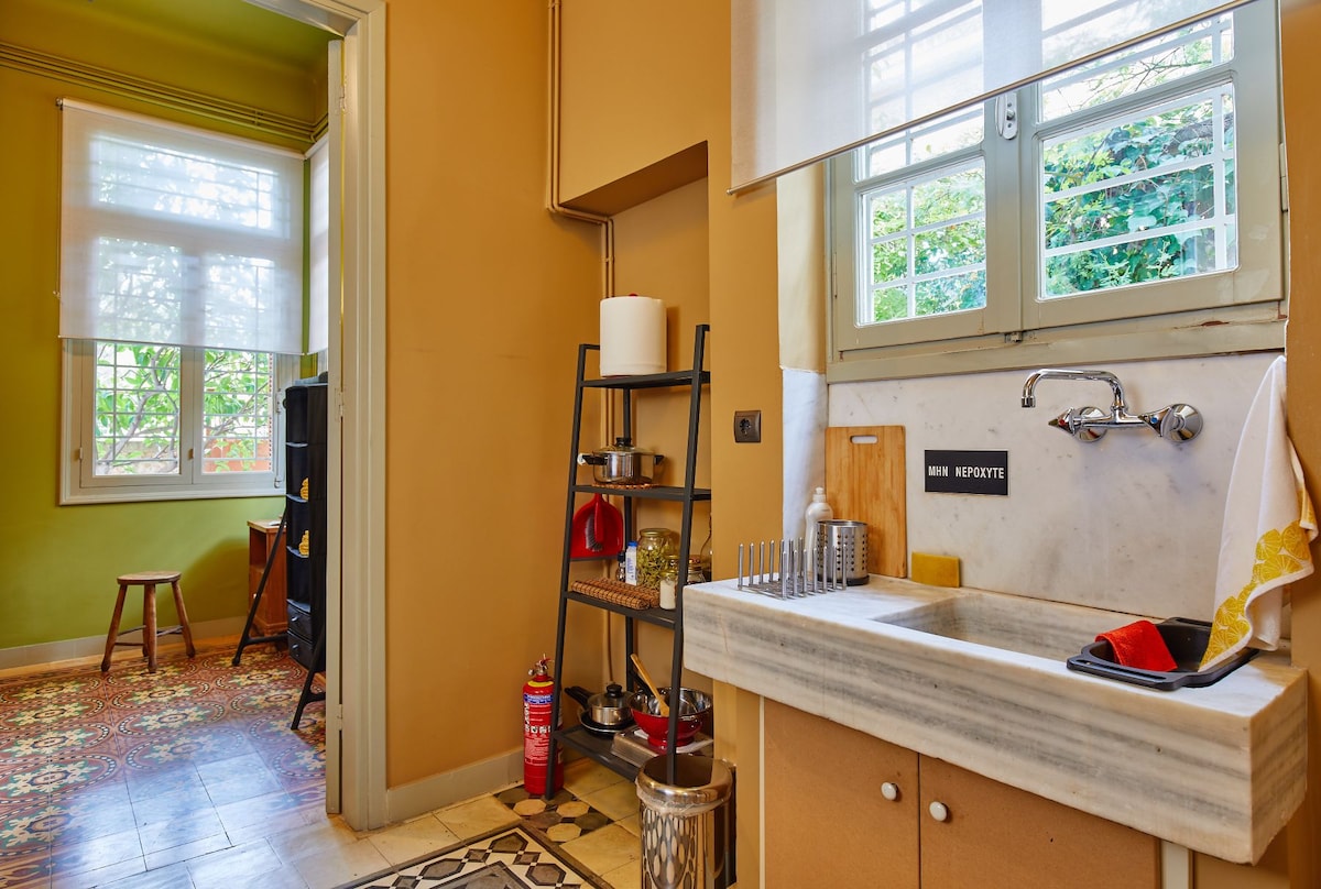 Un apartamento elegante en Atenas, propiedad y diseñado por Neta Dror, una diseñadora y artista que ha infundido el espacio con su visión personal. Este apartamento tiene un espacio único que combina elementos antiguos y nuevos. El apartamento tiene una gran sala de estar con un cómodo sofá, una mesa de comedor y una cocina con todas las comodidades. El dormitorio tiene una cómoda cama doble y un baño oculto que sorprende y deleita. Este apartamento es mucho más que un lugar para dormir, es un lugar para experimentar.