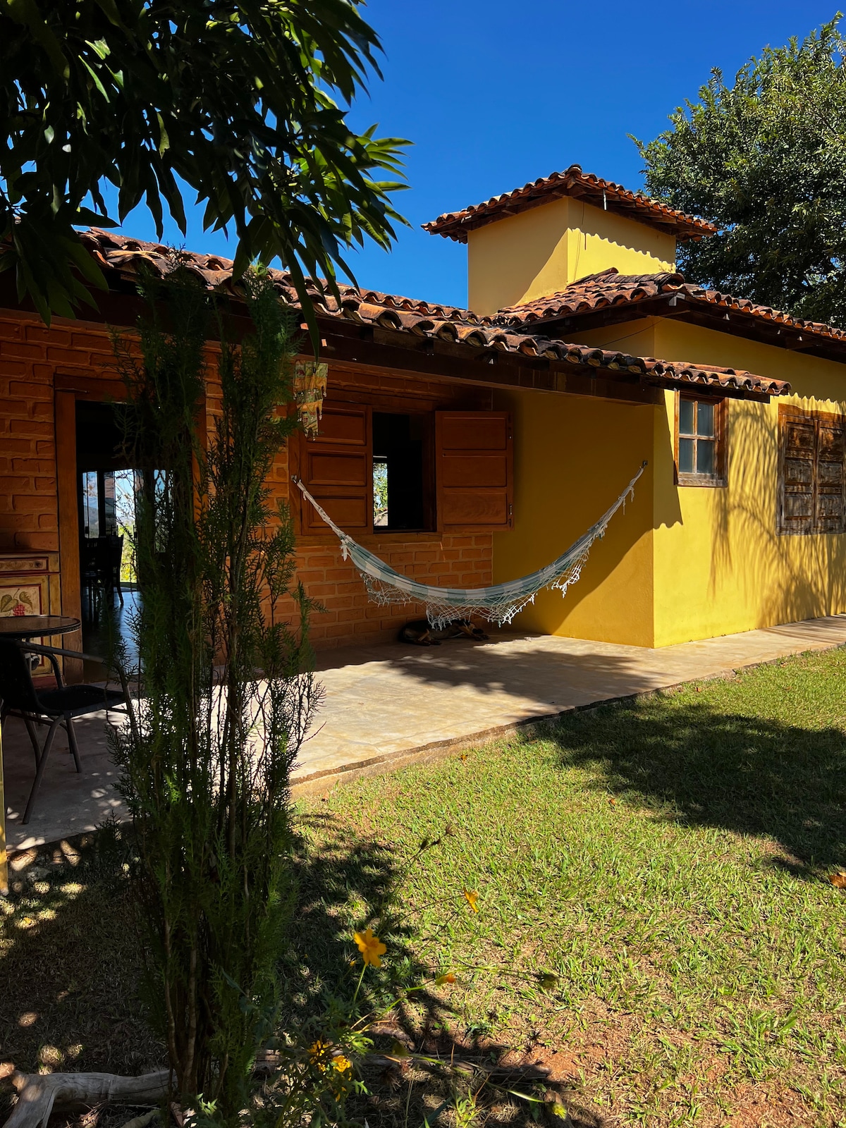 Descubre la tranquilidad y la belleza natural de São Gonçalo do Rio das Pedras alojándote en esta encantadora casita amarilla. En un pintoresco pueblo de Minas Gerais, esta acogedora residencia combina comodidad y rusticidad, ideal para una escapada relajante. Vista inolvidable: amanecer impresionante, una experiencia memorable. Rodeada por la belleza de las montañas y la tranquilidad del pueblo de Minas Gerais, despiértate con el canto de los pájaros y respira aire puro.
