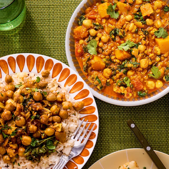 Para sentirte bien, llenando sabores no puedes equivocarte con el guiso marroquí de garbanzos y lentejas de la chef Emily Peck (verduras vibrantes, especias cálidas, combinación de lentejas y garbanzos, calabaza moscada, col rizada Lacinato) o Chana Masala de la chef Lena Elkousy (garbanzos orgánicos sazonados con especias aromáticas indias, repollo salteado y col rizada, arroz Basmati de coco y una cremosa raita de hierbas). Incluye 2 de cada comida.