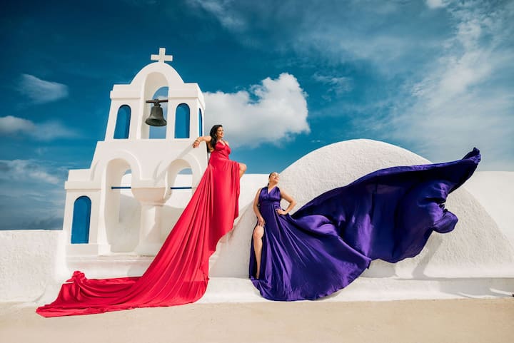 Soy fotógrafo y cineasta, y creo momentos naturales con los impresionantes paisajes de Santorini como telón de fondo.