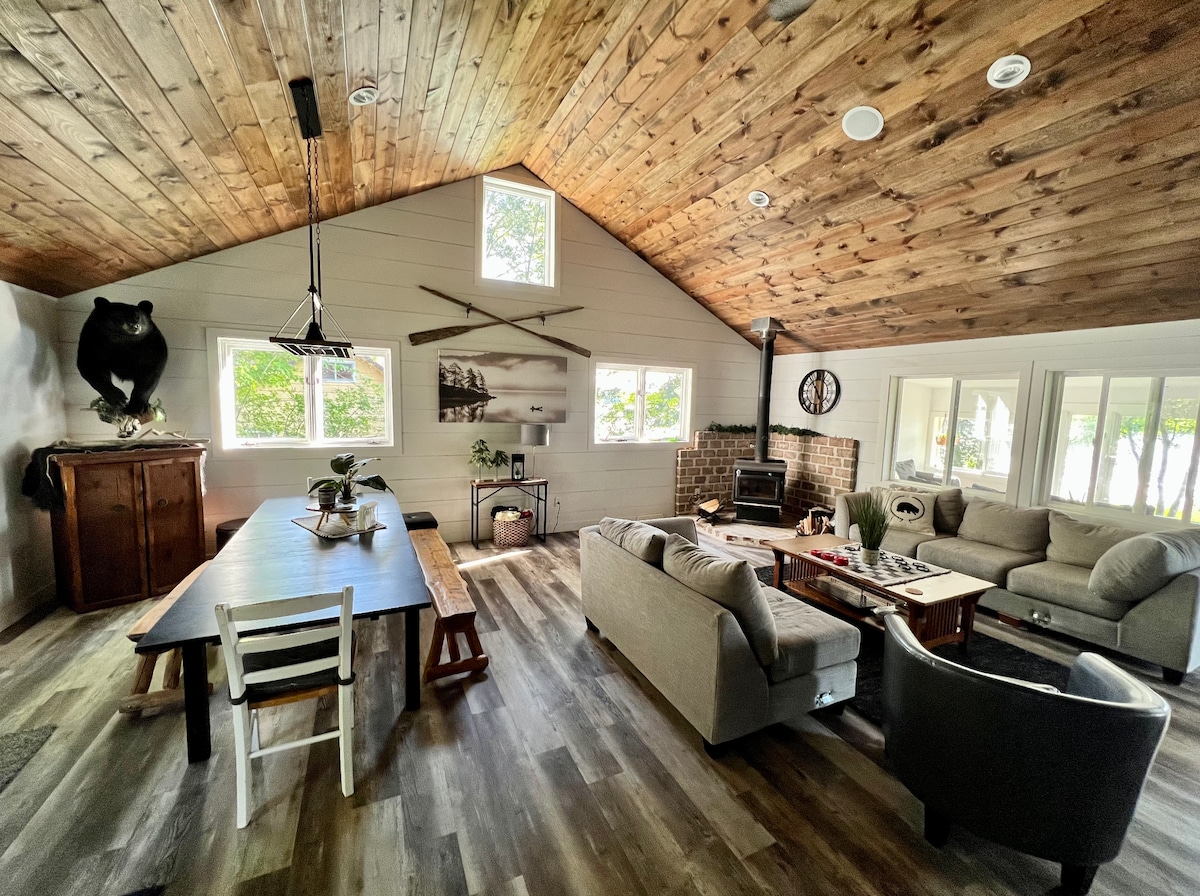 ¡Ubicada en el tranquilo lago Grass, tu acogedora cabaña te espera! Ya sea disfrutando de juegos en el patio, la fogata crepitante o el acogedor abrazo de la estufa de leña, este espacio está cuidadosamente diseñado para tu próxima escapada en familia o una escapada tranquila en solitario. Disfruta de las impresionantes vistas al lago desde el muelle, la terraza o la habitación de cuatro estaciones. Sumérgete en un espacio diseñado para fomentar las conexiones y despertar la creatividad. Te invitamos a que te unas a nosotros y crees tus propios recuerdos en la cabaña.