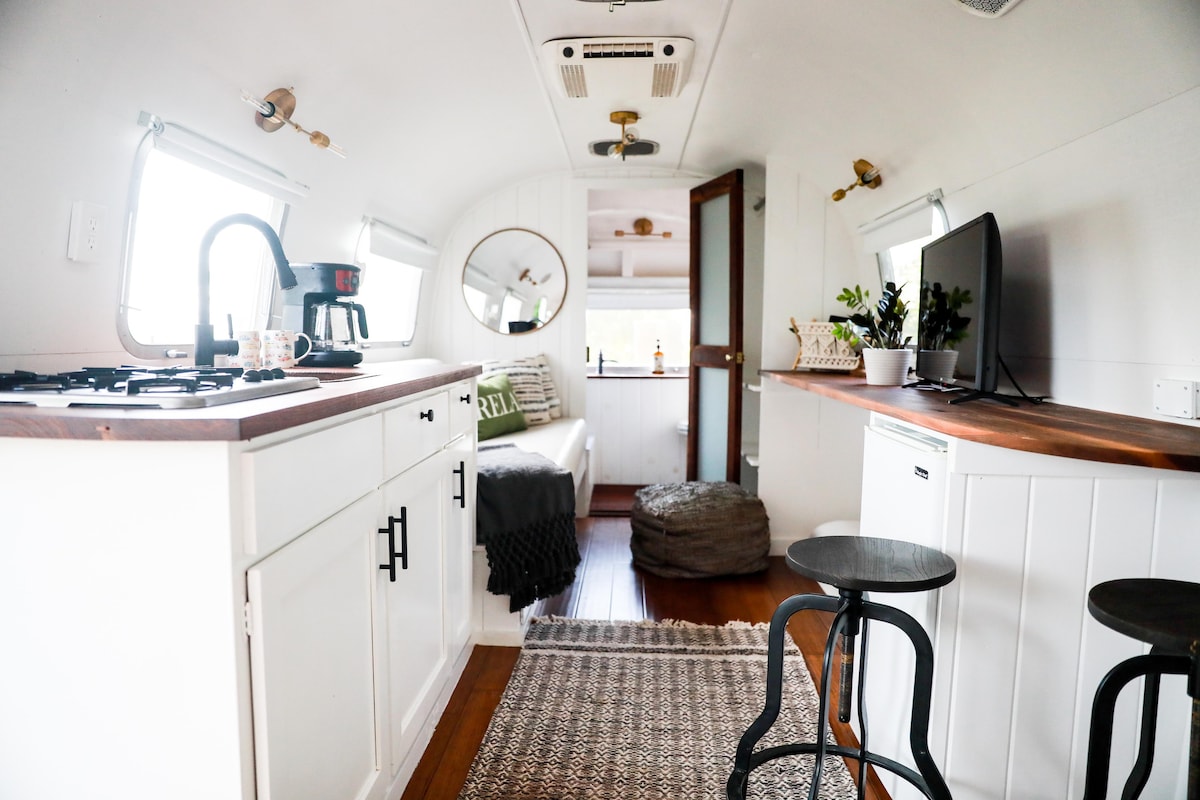 Escápate a un refugio de glamping de lujo único en nuestra Airstream restaurada en el hermoso valle de Shenandoah. Perfecto para 2 o 3 huéspedes, este acogedor refugio cuenta con una chimenea privada, vistas al estanque y una ducha al aire libre tipo spa, además de acceso a una divertida sala de juegos. Relájese contemplando las estrellas bajo un cielo nocturno increíble, a pocos minutos del Parque Nacional Shenandoah, de bodegas y de rutas de senderismo panorámicas. Apto para mascotas y diseñado para la comodidad, el romance y estadías inolvidables. Esto no es acampar. Esto es glamping, y es precioso. ✨