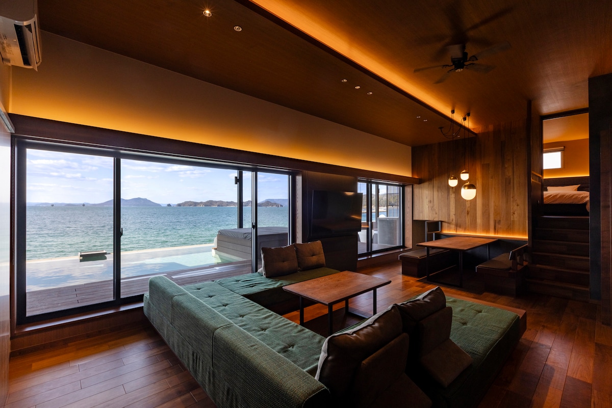 Villa privada de lujo donde podrá redescubrir la belleza del mar interior de Nishi-Seto. Cuenta con una gran piscina y sauna. Limitado a un grupo por día