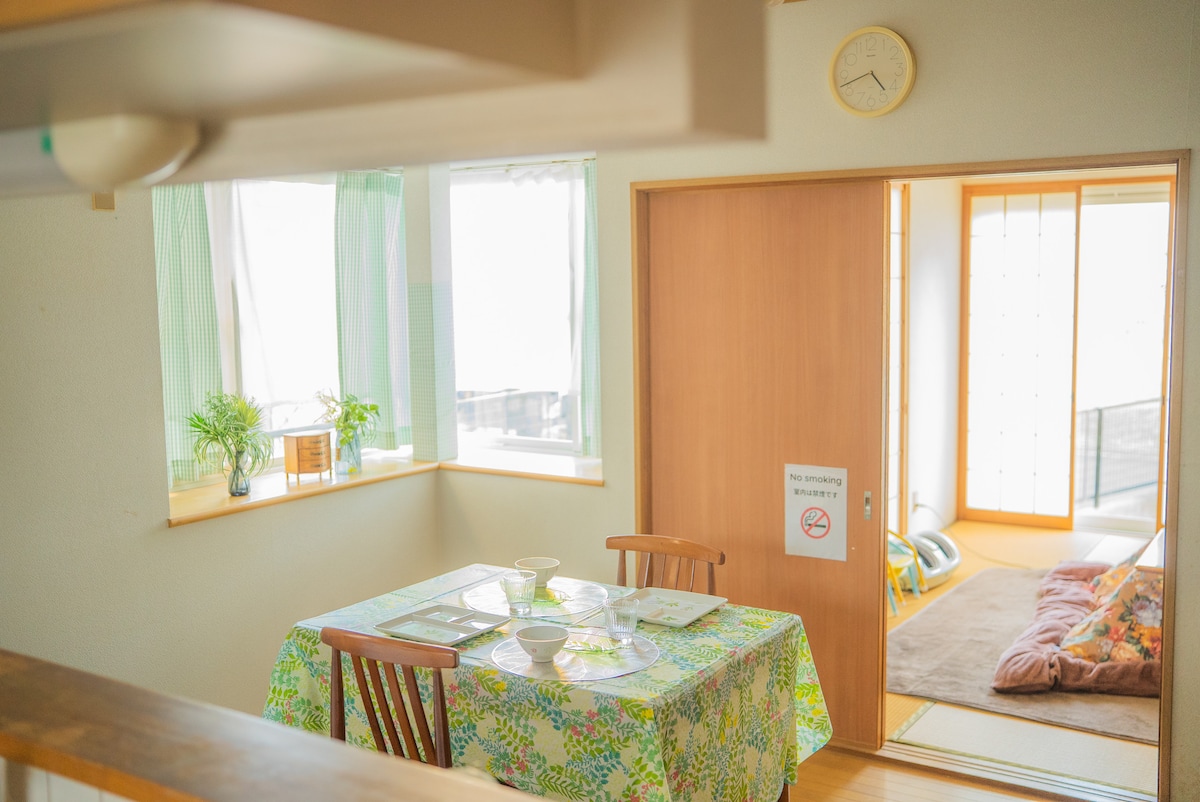 Frente a la playa en Minamichita, Aichi (a 1 hora de Nagoya) Casa privada con impresionantes vistas al mar. ¡Disfruta de la natación, la pesca, los deportes marinos y otras actividades en la playa! Disfruta de un maravilloso tiempo privado con tus familiares y amigos mientras disfrutas de la vista al mar desde el balcón. ¡Disfruta de una mini barbacoa en el banco del primer piso! Puedes conseguir pescado fresco en el mercado de Minamichita (Uotaro). ¡Trabaja mientras disfrutas de la vista al mar! La tienda de conveniencia está a solo 2 minutos a pie y las aguas termales están a 7 minutos a pie.