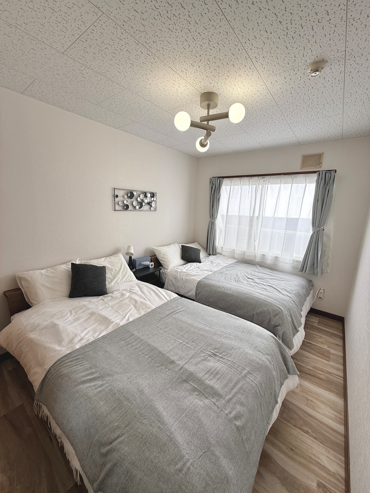 Este moderno apartamento de 2 dormitorios (4 camas dobles) en Kita Ward, Sapporo, fue completamente renovado en invierno de 2023. Ofrece un espacio limpio y tranquilo para un máximo de 8 huéspedes. A solo 5 minutos a pie de la estación de metro Kita 34jo, a 15 minutos en auto de la estación de Sapporo. Una tienda de comestibles y Toyota Rent-a-Car están a 1 minuto a pie. Hay estacionamiento gratuito disponible para 2 autos frente al edificio. El check-in es a partir de las 3:00 p. m. y el check-out es antes de las 11:00 a. m. La propiedad es completamente para no fumadores, incluidos los cigarrillos electrónicos.