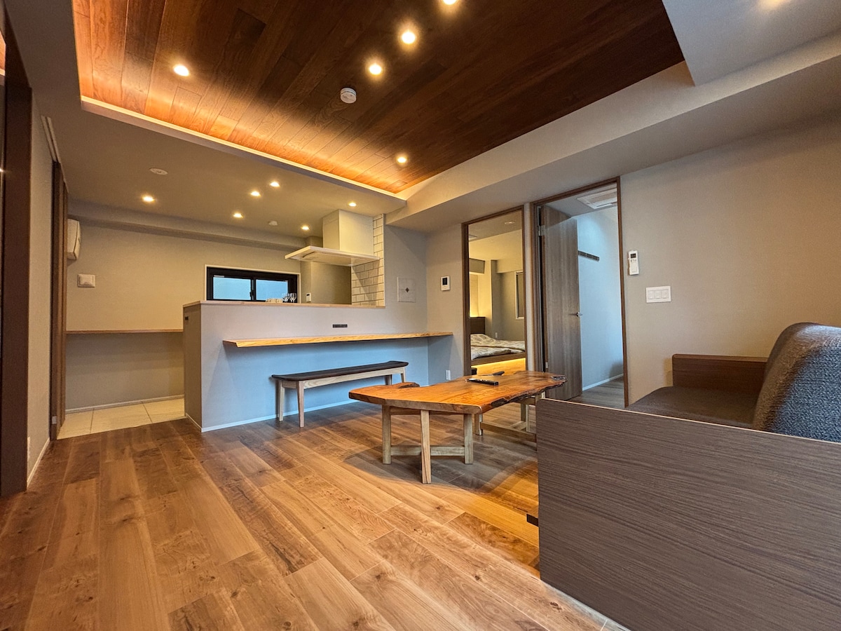 Este 1DK Airbnb se encuentra a solo 5 minutos a pie de la estación de Higashi-Shinjuku en la línea Fukutoshin del metro de Tokio y la línea Toei Oedo, que ofrece un refugio tranquilo del bullicio de la ciudad. El piso de madera y la iluminación crean un ambiente cálido y acogedor. La luz natural entra a través de varias ventanas durante el día, mientras que la luz acogedora mejora la relajación por la noche.