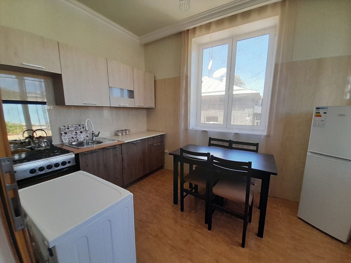 ¡Encantadora casa de estilo Gyumri, en el corazón de la ciudad! La zona de la casa tiene 45 metros cuadrados,combina la calidez del estilo antiguo y las comodidades modernas. La cocina totalmente equipada está equipada con todas las comodidades necesarias, como tostadora, cafetera, hervidor de agua, nevera, lavadora, plancha y tabla de planchar. El baño tiene una ducha refrescante, proporcionamos todos los artículos necesarios para el cuidado personal, incluyendo un peine, cepillo de dientes y secador de pelo. El sofá en la sala de estar es convertible.
