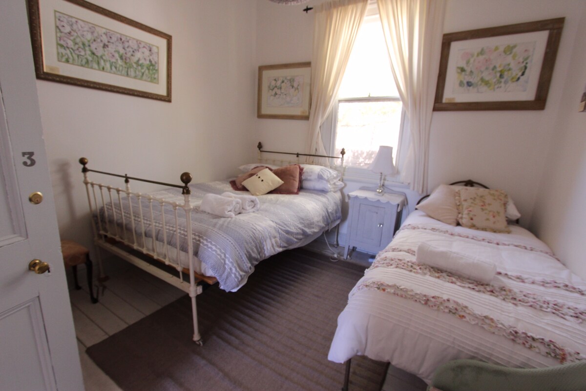 Uso exclusivo de la casa: habitación 1 - dormitorio tamaño queen $185,00 por noche 1 o 2 huéspedes. Habitación 2 - Cama queen, Habitación 3- Cama doble, Habitación 4 - Cama individual tamaño king. Huéspedes adicionales $85,00 por noche por huésped. Aire acondicionado, ropa de cama de calidad, salón, cocina, baño y lavandería. Ubicación tranquila a poca distancia a pie de cafeterías, tiendas, parques. Terraza con vistas al campo. Amplias habitaciones, techos altos de hojalata prensada, tablas de piso pulidas, hermoso jardín. Adecuado para negocios o parejas.