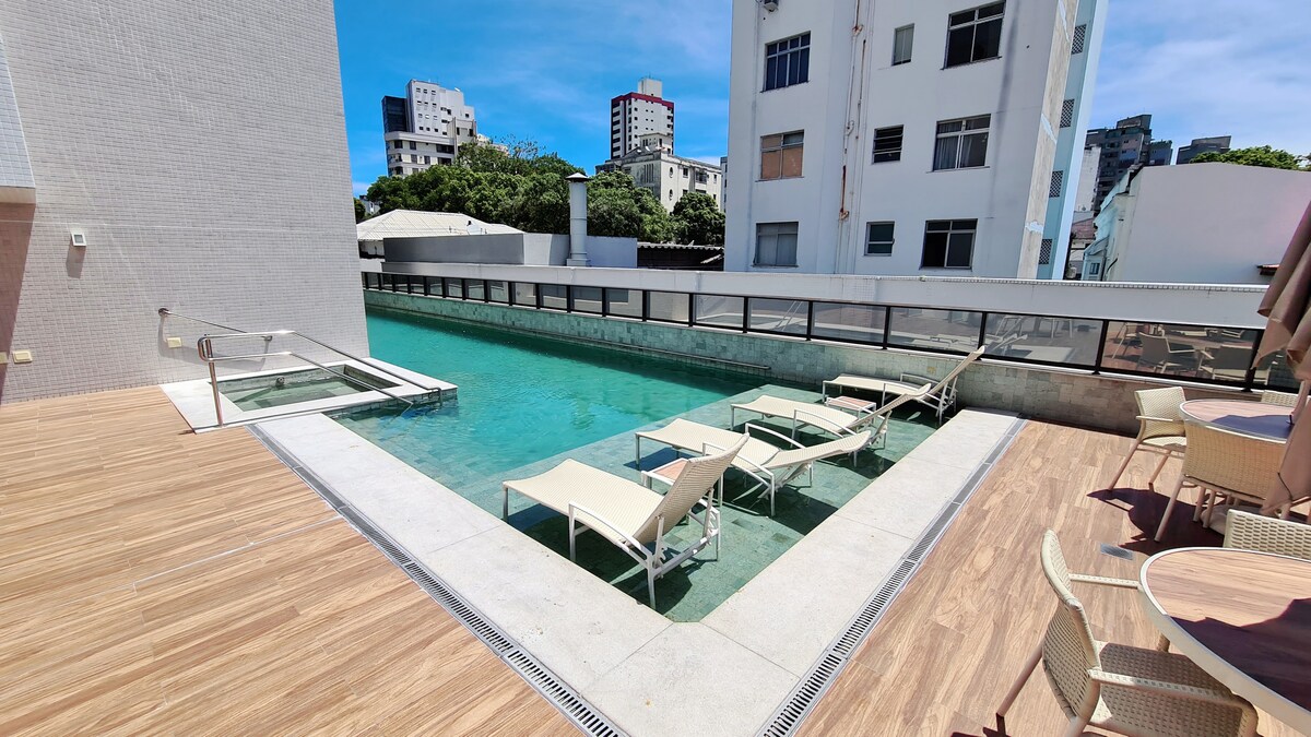 Alójese en este espacio moderno y acogedor con todas las comodidades que se merece a 200 metros del circuito de carnaval. Balcón con fascinantes vistas. Gimnasio, azotea gourmet con piscina con vistas al mar deslumbrantes, ducha, tumbonas, mesas y sillas. Todo esto en la mejor ubicación posible, a pocos minutos a pie de la playa, Farol, Cristo y Porto da Barra, restaurantes, bares, delicatessen, mercados, farmacias, centro comercial y todo lo que pueda necesitar para una estadía inolvidable.