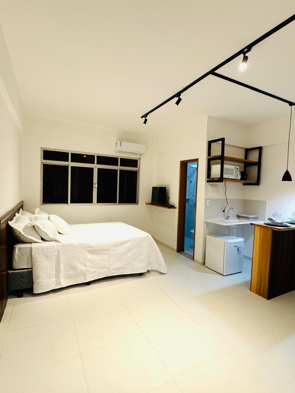 La suite grande, nueva y moderna ofrece comodidad y seguridad. Equipado con una cama tamaño queen, un sofá que acomoda a una persona más, aire acondicionado, TV, wifi, una cocina equipada con minibar, microondas, hervidor, platos y otros artículos para preparar refrigerios, comidas pequeñas o disfrutar de un buen vino. Situado en el centro de Vitória da Conquista, también tiene un garaje cerrado, con control remoto. Edificio con cámaras y cerradura digital. Espacio elegante y elegante.