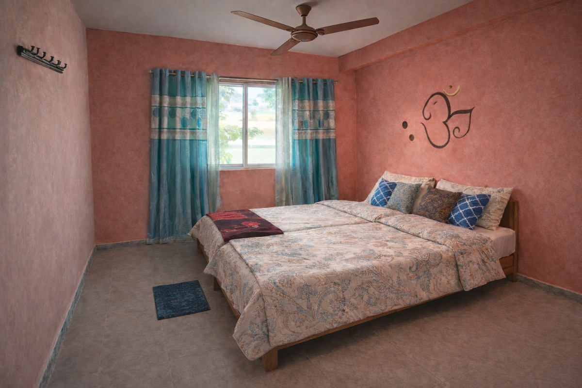 Budget-Friendly Family Stay Near Mahakaleshwar (900 m) Enjoy a clean, cozy, and comfortable stay at our guest house, just 900 meters from Mahakaleshwar Temple. Ideal for families and pilgrims, the room is well-maintained and affordable. Located in the main market area, with many eateries and shops nearby. Amenities include AC, Wi-Fi, geyser, clean bedding, and a peaceful environment—perfect for a pleasant, safe, and convenient stay in Ujjain with easy access to local transport and attractions.