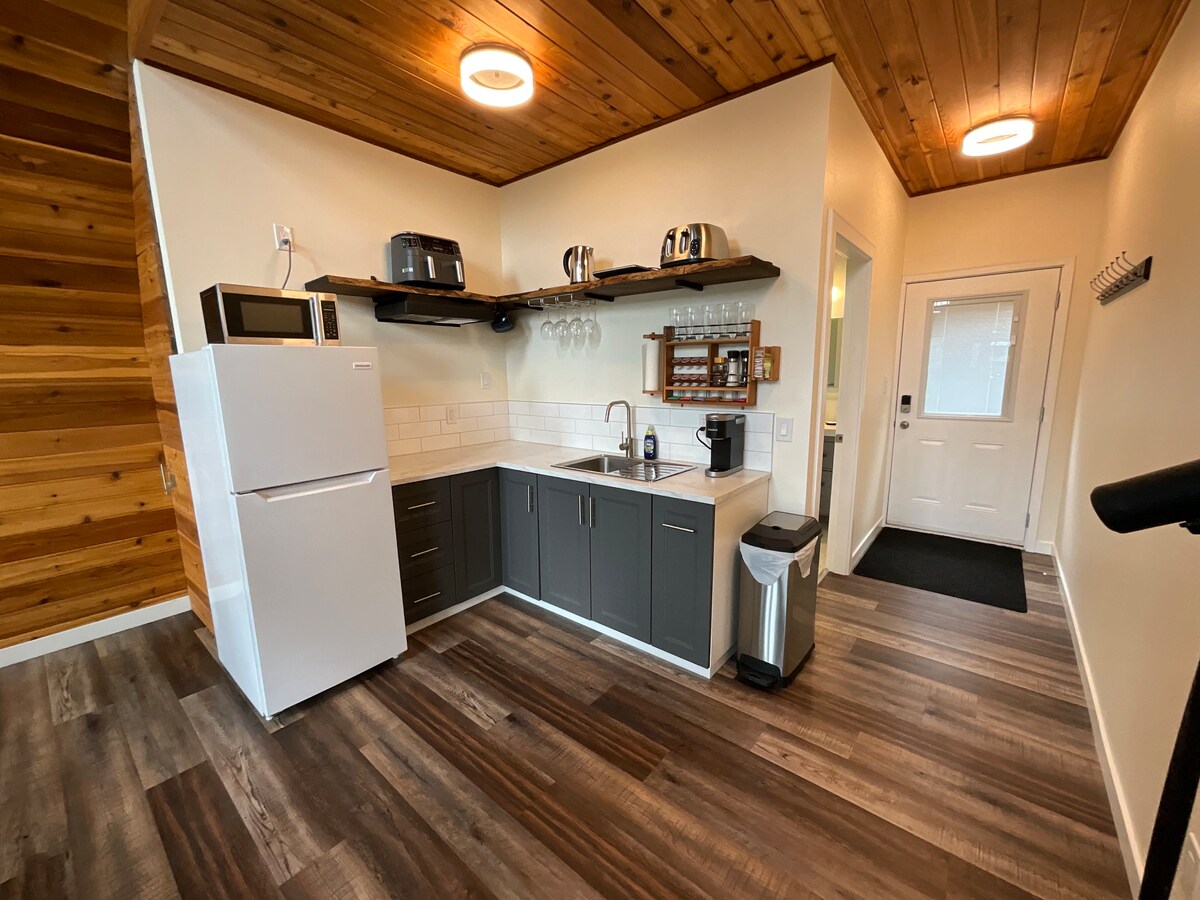 «A Suite Above» es una puerta de entrada a la aventura adecuada para todas las estaciones. Puedes disfrutar de una vista al lago Shuswap en tu terraza privada con la barbacoa de gas natural: ¡nunca te quedarás sin gas! La cocina está totalmente equipada con platos, utensilios, vasos, tazas, cafetera, hervidor de agua y otros servicios que te permitirán comer en la terraza o en la mesa del comedor de la suite. La suite tiene aire acondicionado y la sala de estar tiene una acogedora chimenea de gas natural para esos días y noches más fríos.
