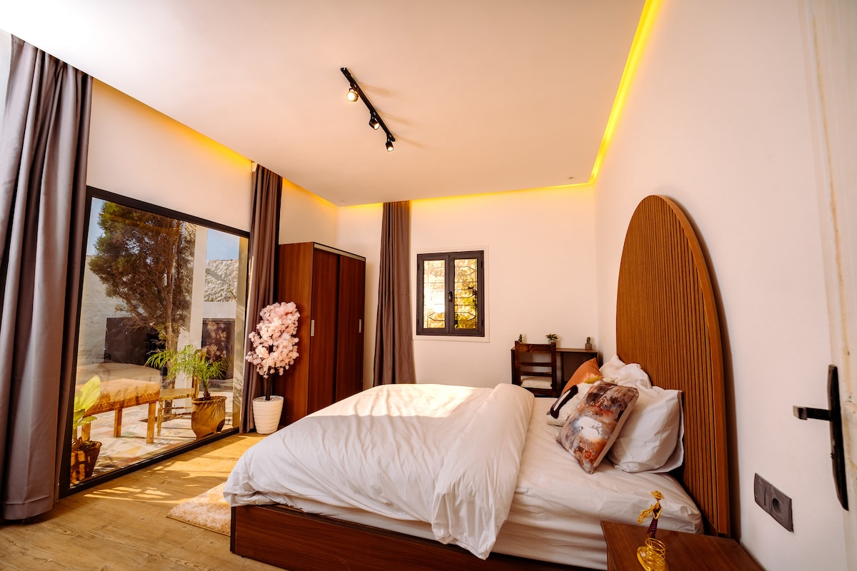 La suite Mama Lova 1 offre une expérience unique au cœur d'Essaouira, alliant élégance traditionnelle et confort moderne. Équipée de deux chambres spacieuses avec lits de palace et surmatelas, elle vous garantit un sommeil exceptionnel. Décorée avec des matériaux locaux nobles, cette suite offre un espace harmonieux et intime. Profitez des produits de bain naturels et d'un petit-déjeuner gourmand servi sur la terrasse pour un séjour inoubliable.