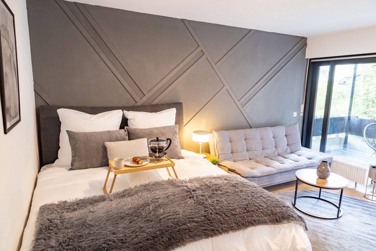 Nuestro apartamento de una habitación completamente renovado y moderno te ofrece todo lo que necesitas para disfrutar de una estancia cómoda y relajante en un espacio pequeño, perfecto para parejas, viajeros solitarios o viajeros de negocios. El área combinada de estar y dormir es luminosa y amigable. A través de la gran puerta batiente tienes acceso a una pequeña terraza donde puedes disfrutar del sol con vistas al Castillo Superior. 🏰