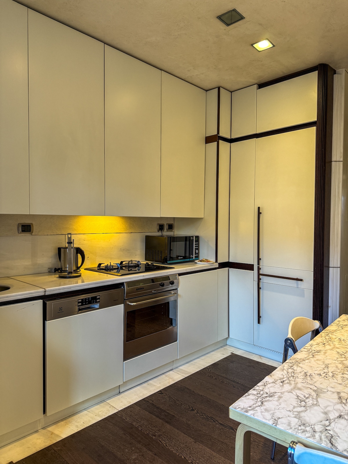 El apartamento Palazzo Pannilini Superior consta de una entrada luminosa enriquecida por un elegante techo artesonado, un gran salón completamente con frescos, un gran vestíbulo, una cocina equipada con terraza, un comedor rematado con una bóveda con frescos, cuatro dormitorios, tres baños, un vestidor y una terraza panorámica donde podrás tomar el sol y relajarte. El apartamento está situado en una segunda planta sin ascensor. Cuenta el departamento con aire acondicionado.