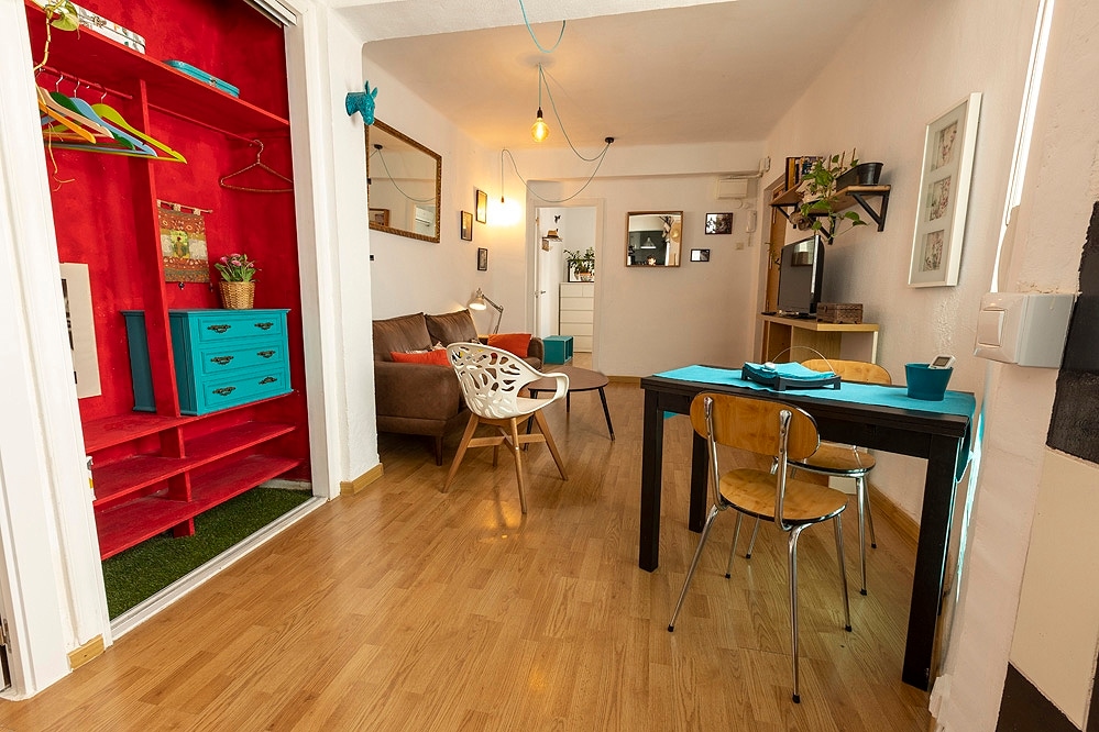 Apartamento en el casco antiguo, ubicado en la primera planta de un edificio del siglo XX con un pequeño patio interior, adornado con azulejos muy bonitos. No hay ascensor, pero la escalera es cómoda y de fácil acceso. El alojamiento es acogedor, compuesto de un dormitorio con cama de matrimonio y un espacio abierto cocina-salón con un sofá cama y un baño completo con ducha. Cuenta con conexión wifi, aire frio/calor, lavadora, frigorífico y cocina totalmente equipada.