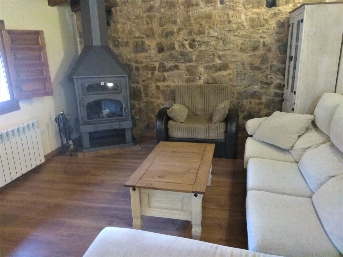 OBLIGATORIEDAD DE SOLICITAR DOCUMENTOS DE IDENTIDAD A LOS HUESPEDES. Edificio construido de forma circular antiguo palomar, situado en una amplia plaza de los geologos, pequeña vivienda unifamiliar muy agradable con todas las comodidades, extraordinaria edificacion realizada en piedra roja arenisca de la zona, vistas maravillosas del lago y pueblo asi como de las montañas y monte de roble, encina y sabina, pueblo muy tranquilo, ideal para pasar unos dias en pareja, o como maximo dos niños.