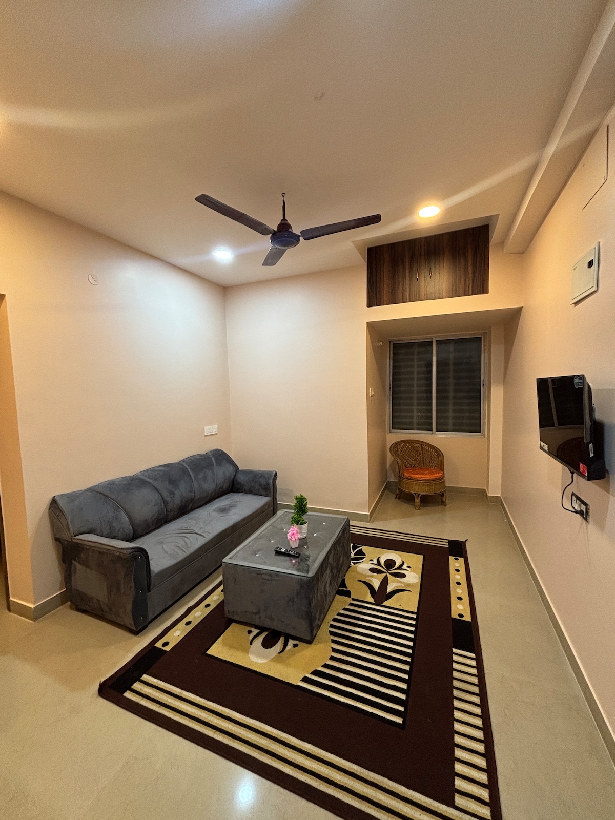 Welcome to a brand-new 2BHK apart, designed for guests who value comfort, peace, and a homely atmosphere. Located in a prime yet peaceful neighborhood, ideal for families, friends and all. •Spacious 2BHK modern interiors( AC in 1 room) •Well-equipped kitchen for home-style cooking •Balcony & open spaces with plenty of natural light and fresh air •Safe & hygienic environment. • Parking for your convenience •Calm surroundings, yet close to all major attractions, shopping, and transport