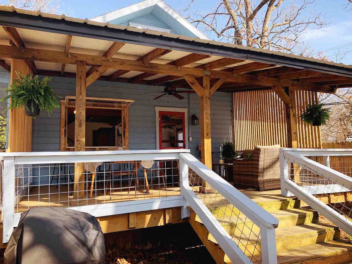 This beautifully designed unique cottage has a style all its own. Comfortable for 8 guests in this 3 bed 2 bath 2 story house. Open concept kitchen/dinning space. Huge covered deck with private fenced backyard. Outdoor bar opens to the kitchen. Perfect layout to gather with friends and family. Freshly renovated with new furnishings/appliances. Walking distance to downtown, shops, restaurants, and The Brick Ballroom. Close to JBU and multiple parks. Easy access and plenty of parking.