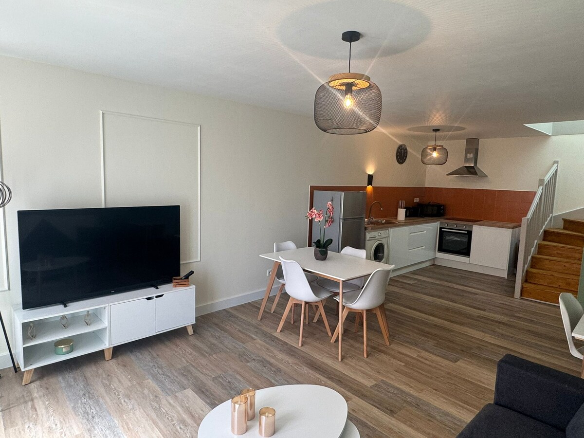 La loge est un appartement penthouse, rooftop aux prestations haut de gamme. Vous pourrez profiter de 60m2 pour 3 personnes maximum (le troisième couchage est un appoint, canapé lit 1 personne de chez Maison du Monde). La loge est la parfaite alliance du confort et de la tradition: charpente apparente, climatisation, fibre optique et bouquet de chaînes TV, cuisine entièrement équipée, décoration choisie, exposition d’œuvres d’art, terrasse, balcon, parking privé en supplément.