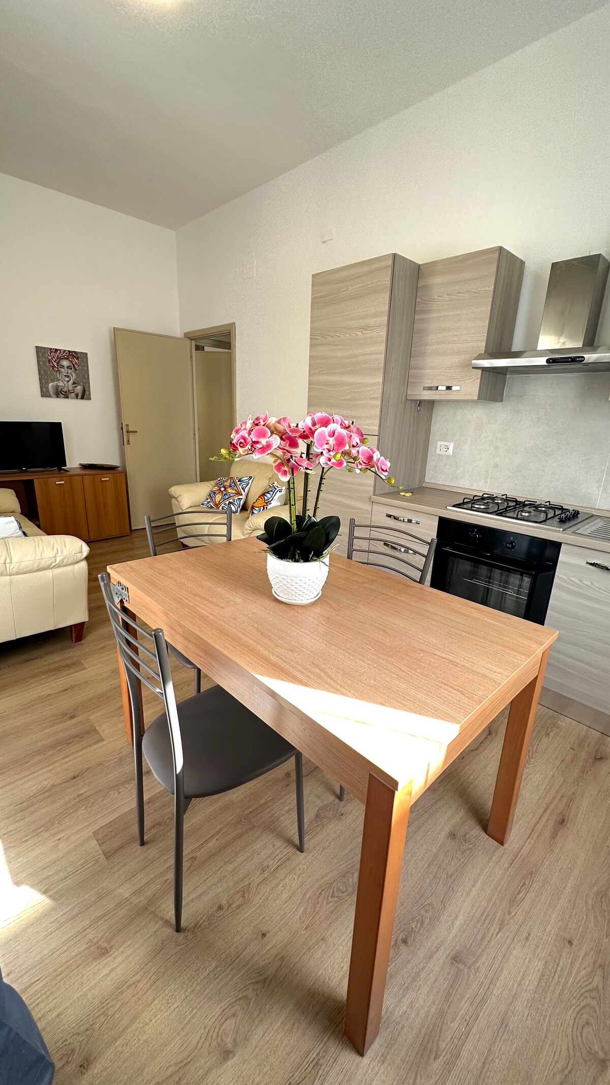 Nido elegante per due nel cuore di Siniscola Un appartamento moderno e curato, ideale per coppie in cerca di relax e stile. Una camera matrimoniale accogliente, arredi contemporanei, aria condizionata e tutti i comfort per una vacanza senza pensieri. A due passi da supermercati e bar e a pochi minuti da spiagge bellissime come Capo comino e Berchida. Il punto di partenza perfetto per esplorare la costa orientale della Sardegna, con il giusto mix di intimità, comfort e posizione strategica.