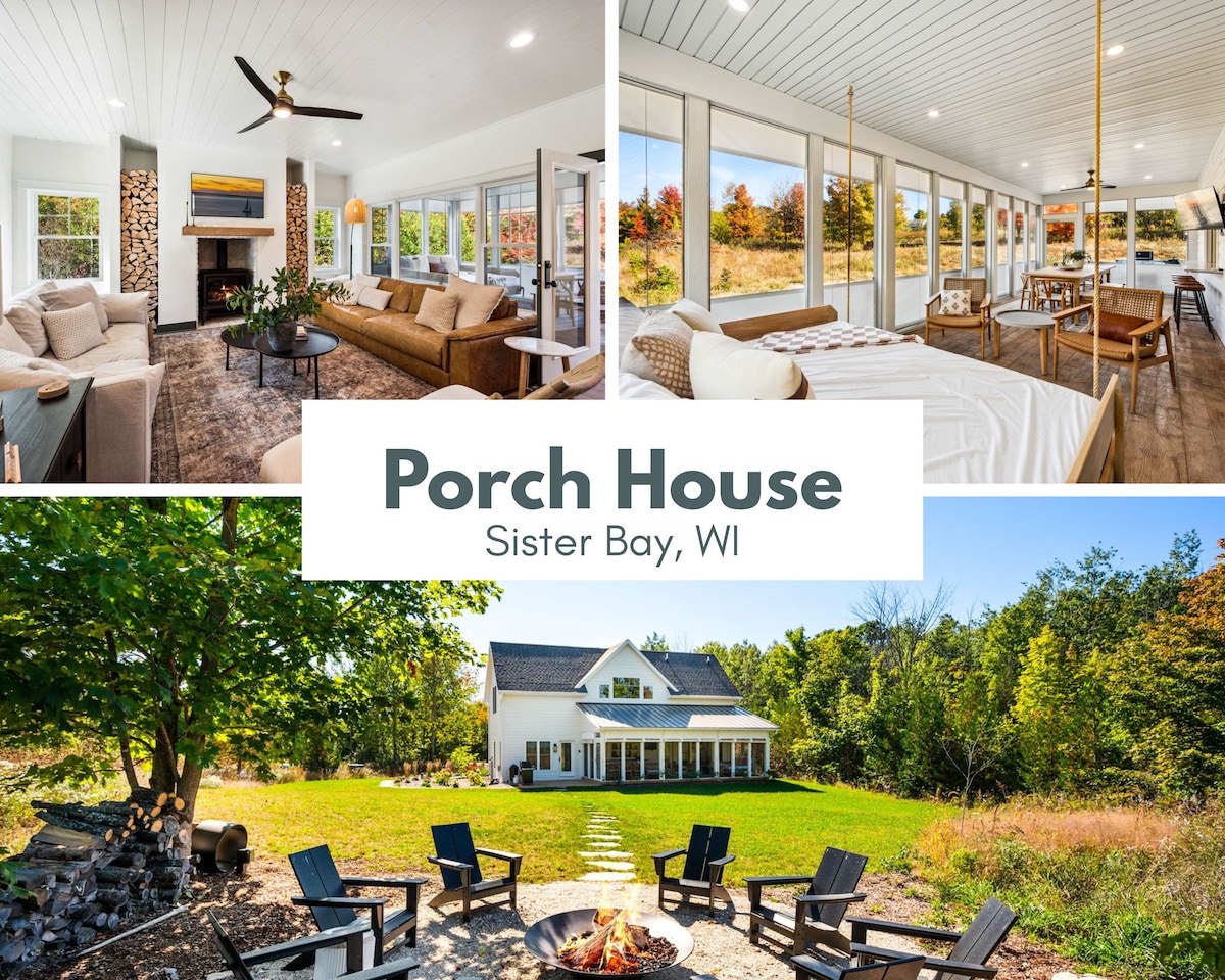 Stunning fresh + modern cottage ready for your visit NEW as of August 2018! Less than 1 mile walk or drive to Sister Bay Downtown + just minutes from the Beach! 3 Bedrooms: 1 king w/ on-suite bath, 1 queen w/ on-suite bath, twin trundle bed 3 full bathrooms: 1 on the main floor, 2 on-suite on 2nd floor Great cooks kitchen, fully stocked w/ open concept living space, w/ Sonos in kitchen! BBQ gas grille + awesome fire pit, expansive deck w/ dining space & lounge chairs