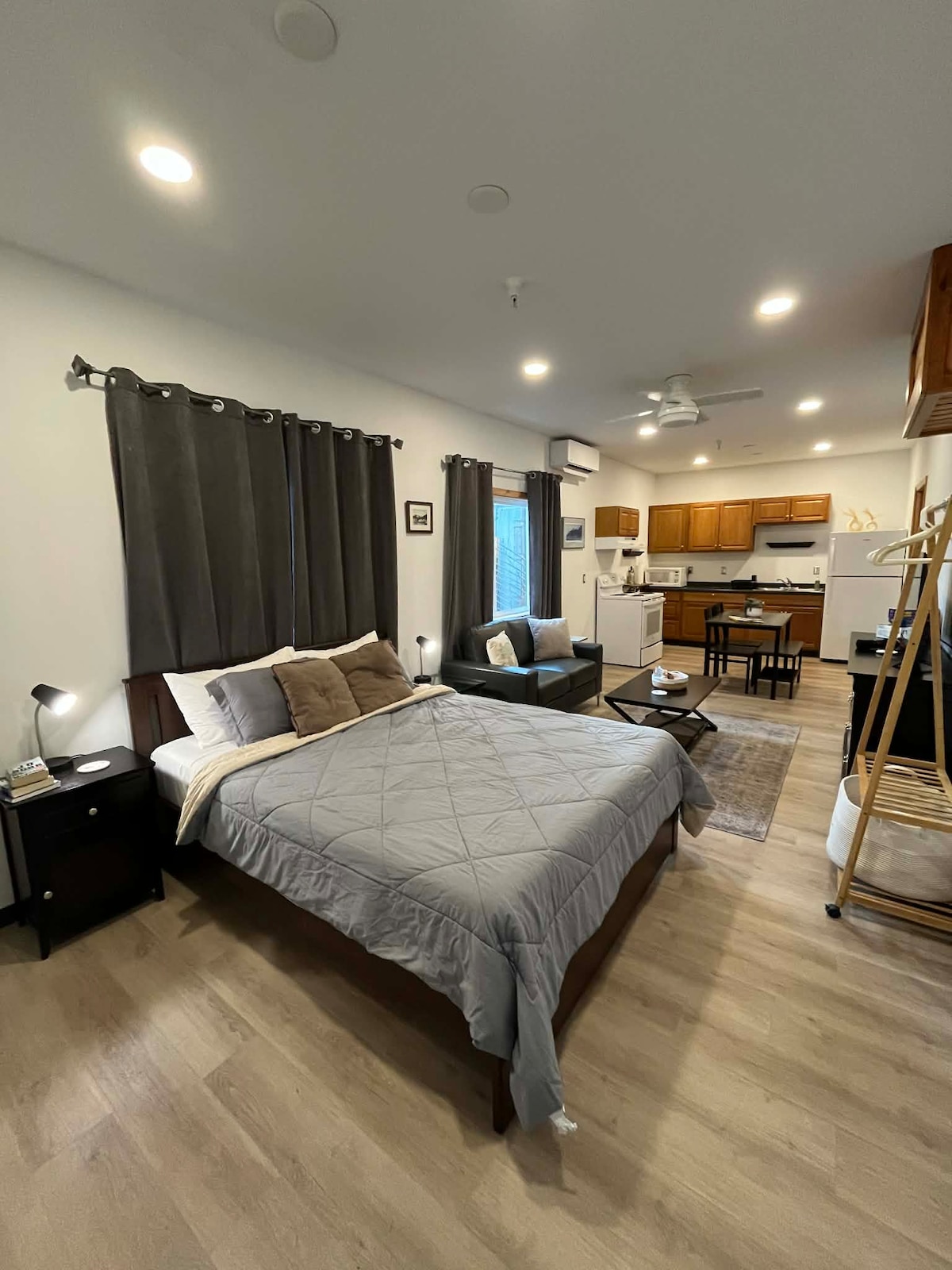 Acogedor apartamento ubicado en la parte superior de una casa de tres pisos en el corazón del centro de Sitka. Tiene dos dormitorios, cada uno con una cama tamaño queen y dos cómodos sofás de cuero (un sofá de dos plazas y otro de tamaño completo). La cocina es una cocina pequeña, por lo que no hay fogones, pero viene equipada con microondas, placa eléctrica, cafetera y tetera. Nuestro piso está justo debajo y no está separado por una puerta, pero tienes total privacidad. Tenemos dos perros y un patio trasero lleno de gallinas, pero ningún animal entra en el alquiler.