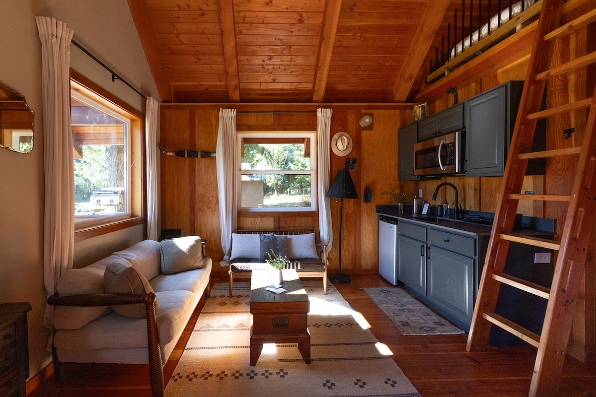 Escucha los sonidos del río y observa a los kayakistas flotar desde una de las únicas cabañas con vistas directas al río White Salmon. Este acogedor refugio de un dormitorio más una litera ofrece una enorme terraza con vistas a los rápidos. Con una ubicación privilegiada cerca de un popular sendero para caminar y un punto de salida para kayak, tienes recreación en tu puerta principal. Disfruta de cenar junto al río en la amplia terraza, rodeado de exuberantes jardines y el relajante sonido de los rápidos. Una escapada tranquila y llena de naturaleza que nunca olvidarás.