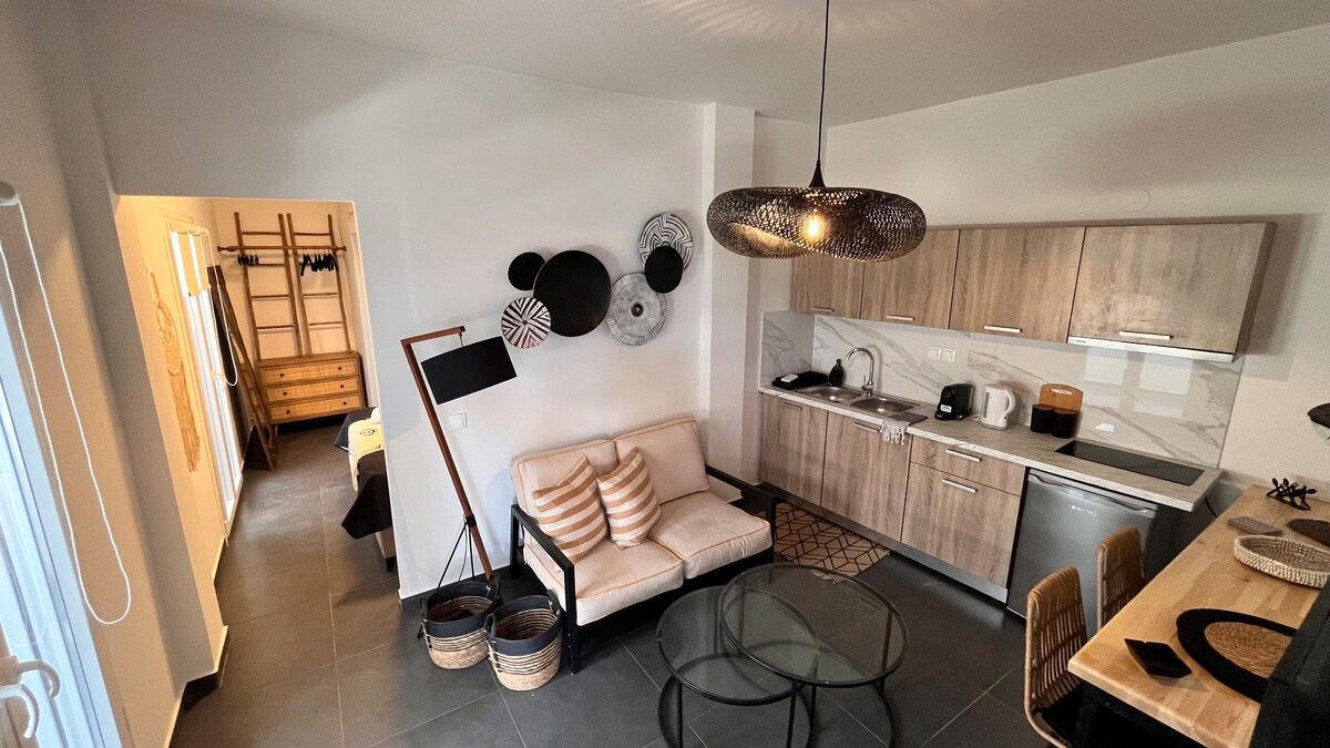 Fteri es un apartamento privado a estrenar ubicado en el corazón de la ciudad. Fteri es un apartamento elegante y moderno. Situado perfectamente para facilitar la exploración de nuestra isla. Todo lo que necesitas está a poca distancia, desde tiendas y restaurantes hasta la vibrante vida nocturna de nuestra isla. Se compone de una cómoda cama doble, cocina equipada, balcón privado, aire acondicionado, WiFi, TV inteligente, caja fuerte y un moderno baño privado. También hay un paquete de información local que contiene varias actividades.