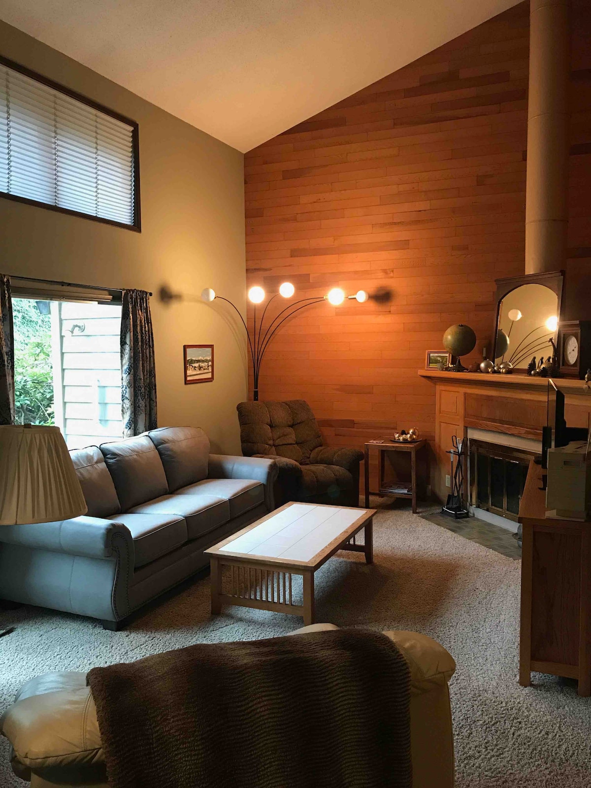 Apartamento de los años 70 con aparcamiento en garaje (no apto para camiones grandes). En la planta baja: medio baño, salón/comedor, hermosa cocina grande con electrodomésticos antiguos pero totalmente funcionales. Arriba: 1 dormitorio con cama king, 1 dormitorio con cama queen (¡esto es un loft!). Ambos dormitorios tienen baños completos. El apartamento está completamente amueblado, incluyendo lavadora/secadora, patio con barbacoa. A pocos pasos de extensos senderos para bicicletas/caminatas a lo largo del río. Dos bicicletas/cascos incluidos. Fácil paseo a pie o en bicicleta hasta Autzen, fácil paseo en bicicleta hasta el campus de la Universidad de Oregón y Hayward Field.