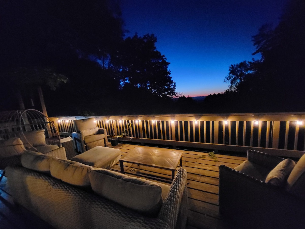 Celebra tu momento especial con elegancia y comodidades de 5 estrellas solo para parejas adultas. Te mereces el Sunset Rouge. Es un destino en un entorno relajado y romántico para escapar de la ansiedad de los niños, la ciudad y el trabajo. Deja que la decoración divertida y las vistas panorámicas inspiren al escritor y artista que llevas dentro. Durante el día, vuela con las águilas a la altura de los ojos. Por la noche, mira hacia el cielo para atrapar una estrella fugaz. A menos de 2 millas se encuentra el lago Shannondale con acceso a la playa proporcionado por el Mountain Lake Club.