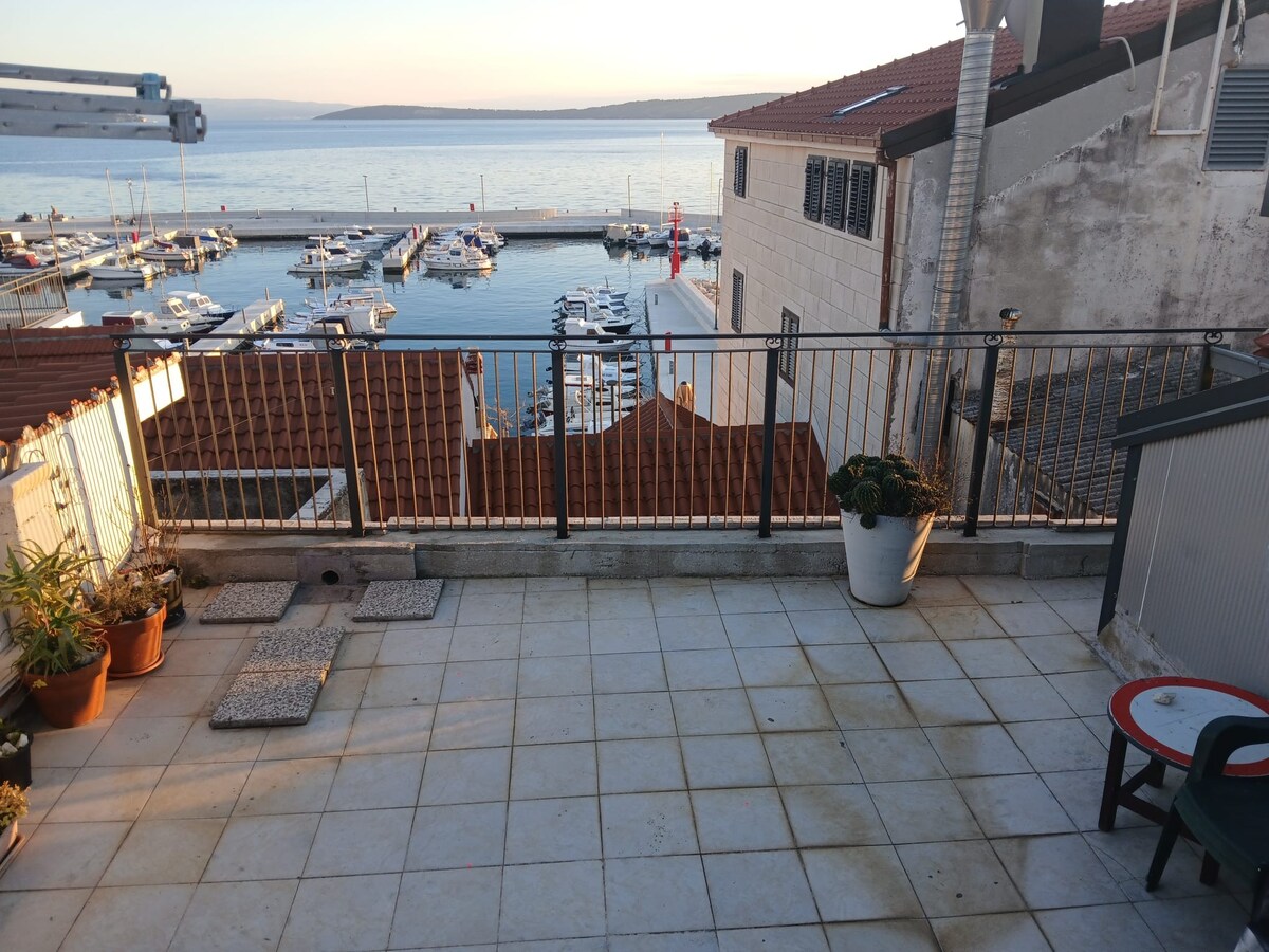 Ático junto al centro de la ciudad con vistas increíbles al Palacio de Diocleciano, el puerto y el puerto deportivo. El palacio en sí, de 1700 años de antigüedad, está a solo 5 minutos a pie del apartamento y es un sitio certificado por la UNESCO. Lleno de pequeños cafés y restaurantes pintorescos, ofrece entretenimiento y cocina croata en todo su esplendor. Las playas no están lejos, a 15 minutos a pie del apartamento a ambos lados del puerto. Hay un supermercado en la planta baja y una farmacia a 100 metros calle abajo.