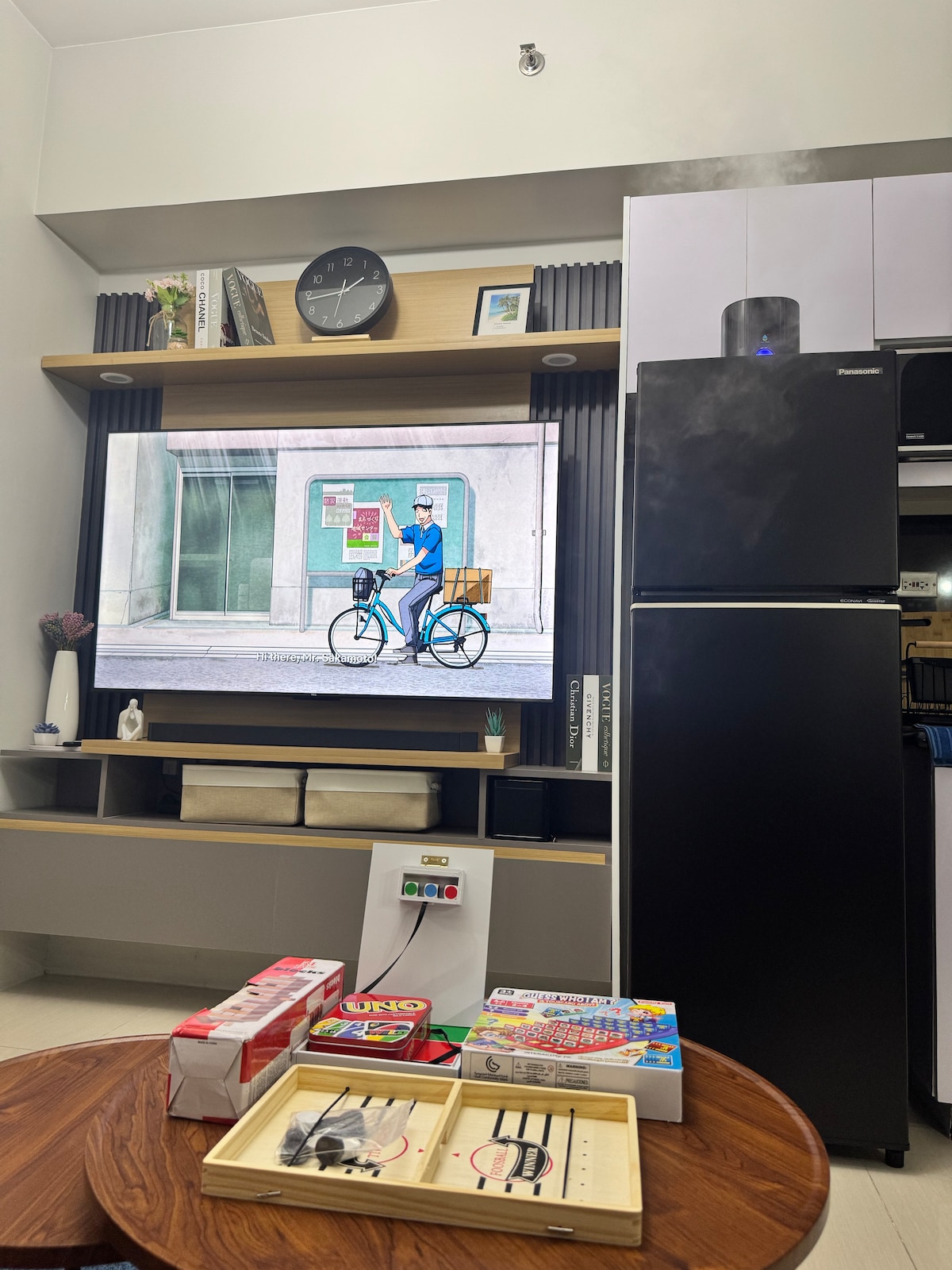 Bienvenido a nuestra impresionante unidad de condominio con un diseño de temática de cine en casa. 🎥🎬 ¡🍿 PALOMITAS GRATIS! 🍿 Características de la🏖️ habitación: Experiencia ✅ cinematográfica con proyector con aplicaciones integradas como Netflix, Youtube, etc. Habitación con✅ aire acondicionado. ✅ Ventilador de pie. Cama de✅ matrimonio. ✅ Sofá cama Juegos de✅ mesa y cartas. ✅ Micrófono para videoke. ✅ Nevera ✅ Microondas Ducha ✅ fría y caliente. ✅ Toallas Kit de servicios para✅ huéspedes Hervidor ✅ eléctrico Utensilios de✅ cocina ✅ Plancha para ropa Wifi ✅ gratuito ¡Disfruta de tu estancia! 💓