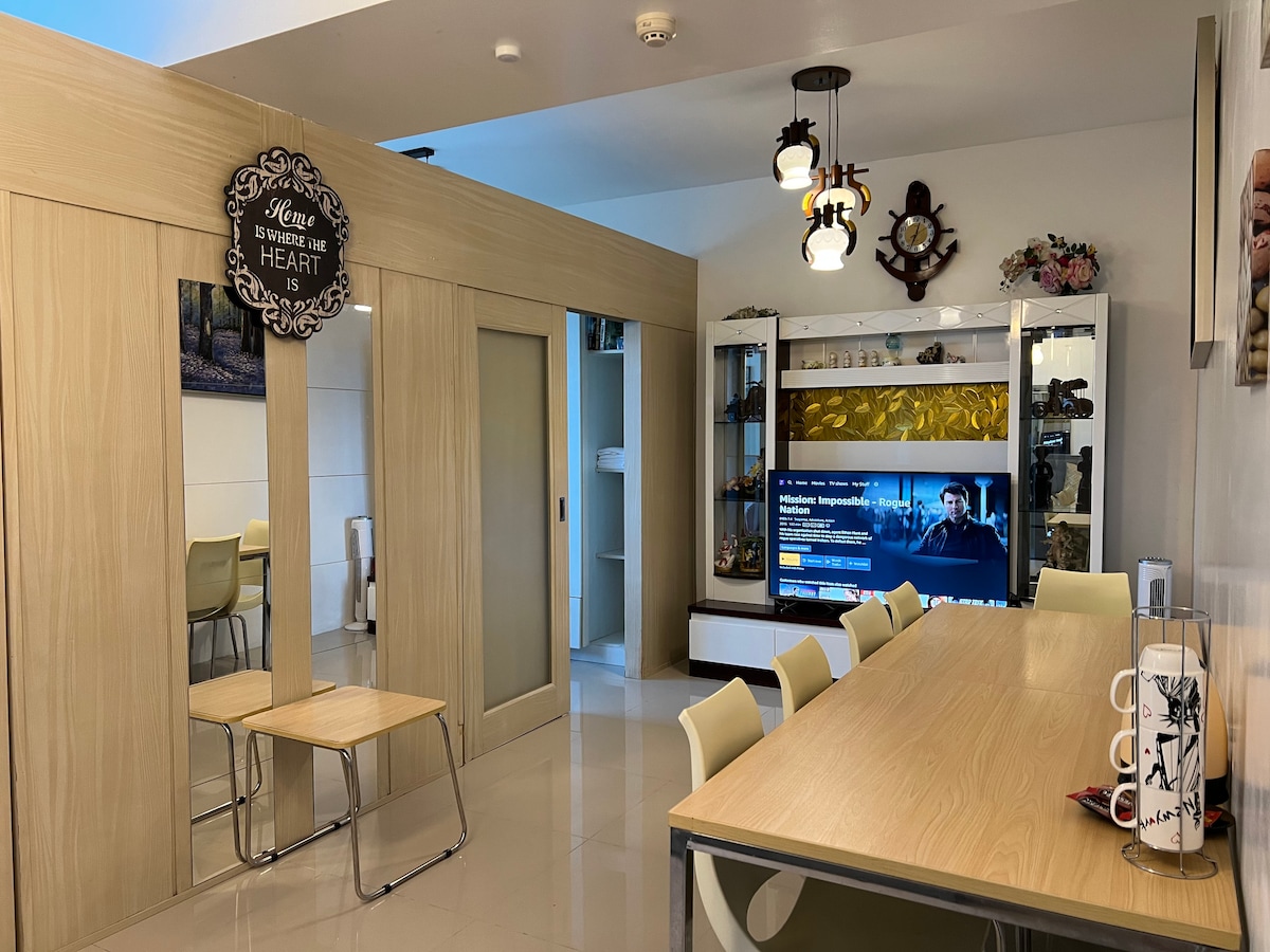Viaje de negocios y condominio apto para familias estratégicamente ubicado en el centro de Manila. El edificio está justo en la parte delantera del MRT y tiene fácil acceso a la zona de Makati, Rockwell, Ortigas y The Fort. Completo con wifi rápido, Netflix, lavadora con secadora, aire acondicionado, microondas y plancha para tu viaje de negocios y necesidades familiares. Servicios completos como piscina, cines, hipermercado y restaurantes en los pisos inferiores para su relajación y necesidades diarias. Todo lo que quieras en la casa de tus sueños es esto.
